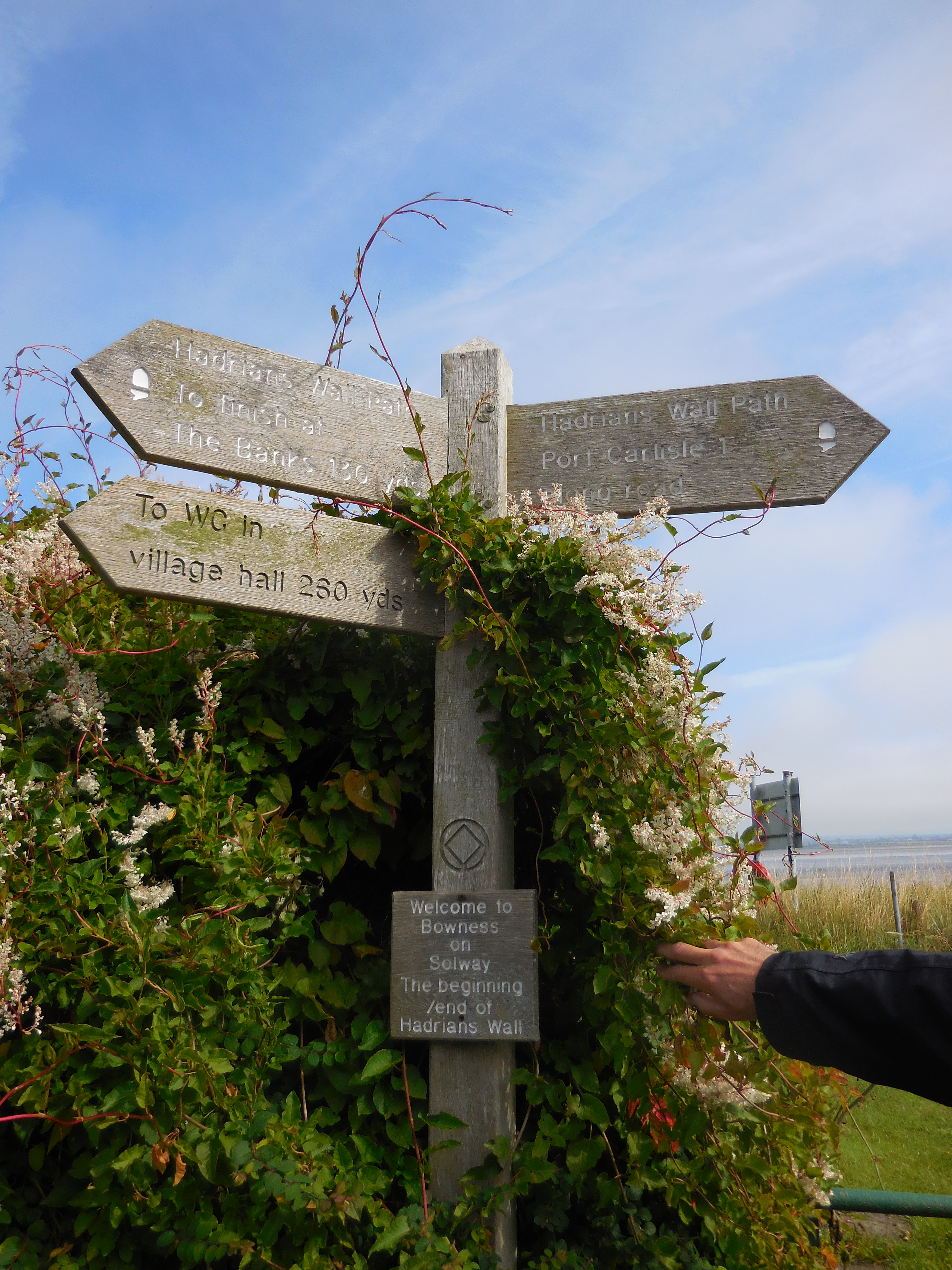 On our first walking day we left some of the kit in the hotel room as we were coming back to Carlisle in the evening, and brought extra water because the weather was lovely and sunny. Then we had a quick breakfast and went to find the bus station, which looked like a bit of a walk on my map but was really easy to find because everything was smaller than I thought. We found our bus and left at 9.35 for Bowness-on-Solway to start our adventure, along with four daytripping ladies with uncapped Leki poles and an Australian lady with a pack that seemed to be held together by gaffa tape and memories. She looked like a serious serial walker though. We saw a few other walkers en route, but not many.