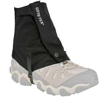 Just slip the adjustable strap under the boot, fasten the hook on the laces, pull the two sides together so the velcro catches and fasten the button. Adjustable to suit thin and not so thin ankles and varying amounts of legwear. Goretex water resistance and not expensive either.