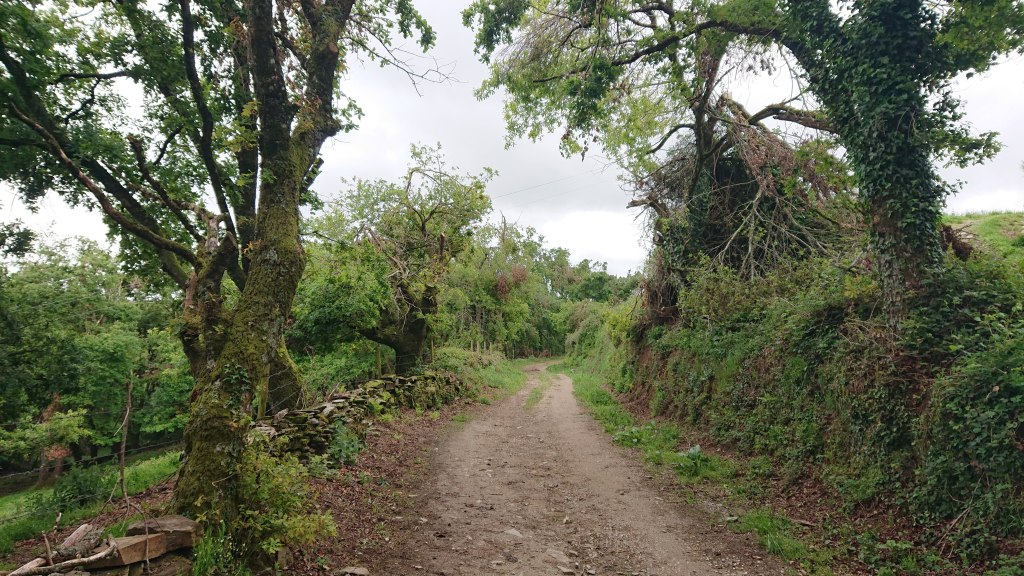 As I came out of the woods, just up the road from the big shell fountain, I stopped to take a layer off as it was getting warmer (at least I was at this point). And when I turned to look back … there was Piia walking towards me! We never mentioned walking together the night before, but here we both were so we carried on towards Sarria together. The San Xil route is actually very pretty, but we must have been busy talking because there are no more photos from this walk!
