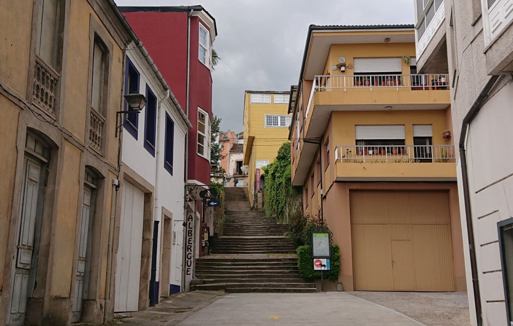 At long last we arrived in Sarria, and had to get up Those Stairs – not one of my favourite uphills I have to admit.