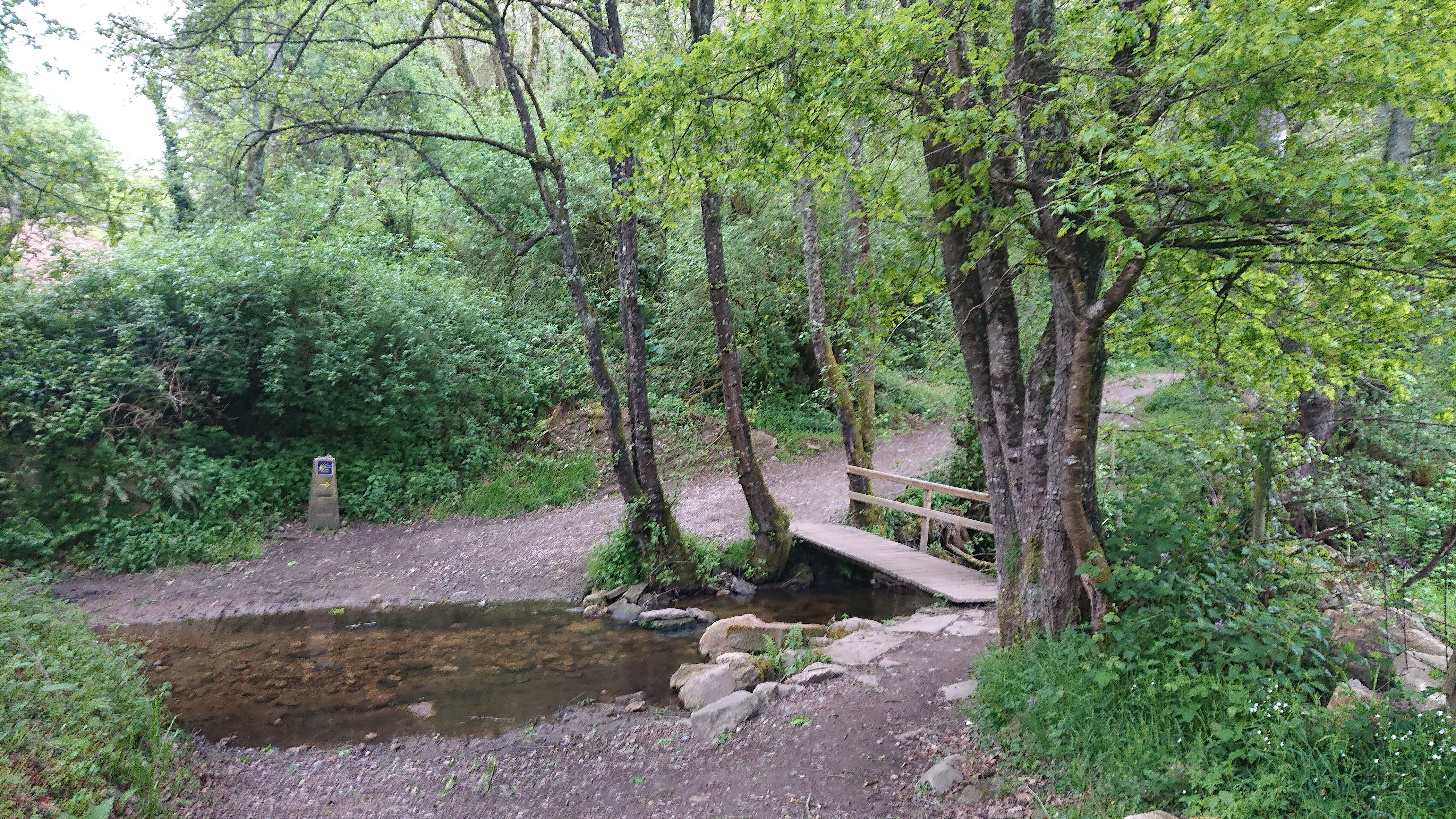 … and the second lovely brook … and the tree tunnels … and the view of the fields as you come out of the woods before Mercadoiro … (which by the way was closed, both the bar and the albergue, I hope it was just temporary)