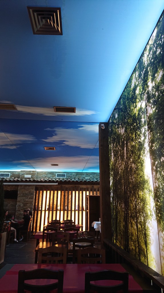 In the evening I went to the churreria Furancho for the ribs, which I have had before, plus I like the decor! Karen met me there with another lady she had met along the way, and when a fourth peregrina sat down on the next table on her own, we invited her over. It turned into a very good night with many laughs, and we finished the evening with a night cap on the square under the beautiful trees. Still feels odd to have to go to bed while the Spanish kids are running around though, but she who wants a pleasant walk the next day has to retreat to her bunk early.