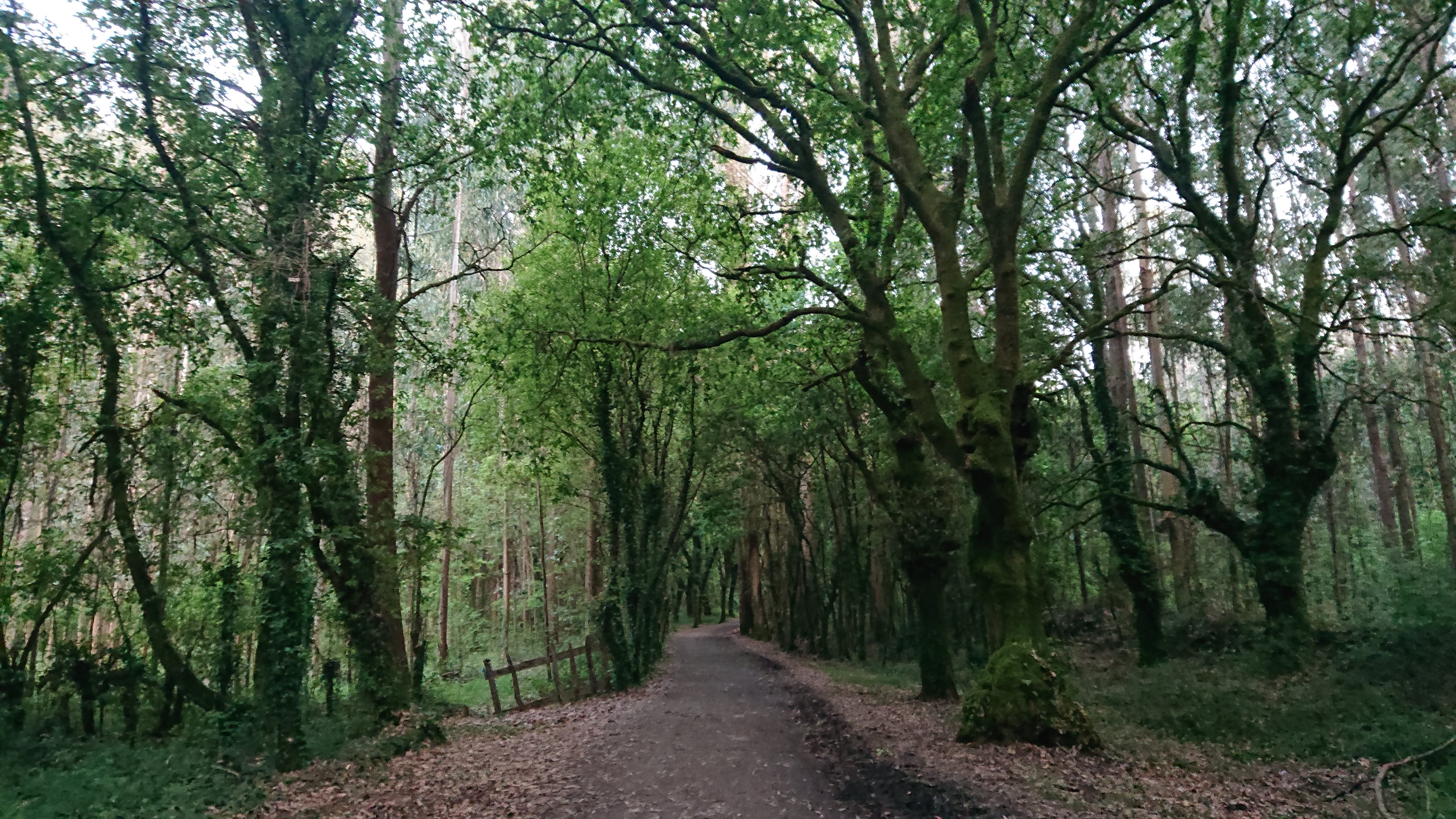 One of the cafés just up the road had the metal shutter half way up, and when the ladies inside saw my hopeful and coffee deprived little face they opened it up and let me in. I even got a free little cake with it. Good start to the day! The trail quickly turns into the woods again for a fresh and lovely morning walk. I think I managed to get in the middle of the bright and early and party pilgrims, because I didn’t see many others and didn’t have to walk in a queue, which is always good.