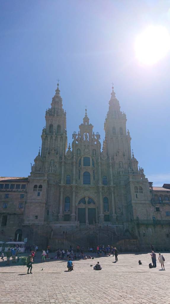 I messaged David of ClearskiesCamino blog, who was coming into town with his brother from the Inglés on the same day, and as it turned out they had arrived only a short while before me, so for once I was greeted by someone I knew when I walked into the Obradoiro square! We took some photos, took in the view of the cathedral, and then went to the square behind it to have a well deserved and refreshing clara. I don’t think I have ever arrived so early before, about noon, but was already very hot.