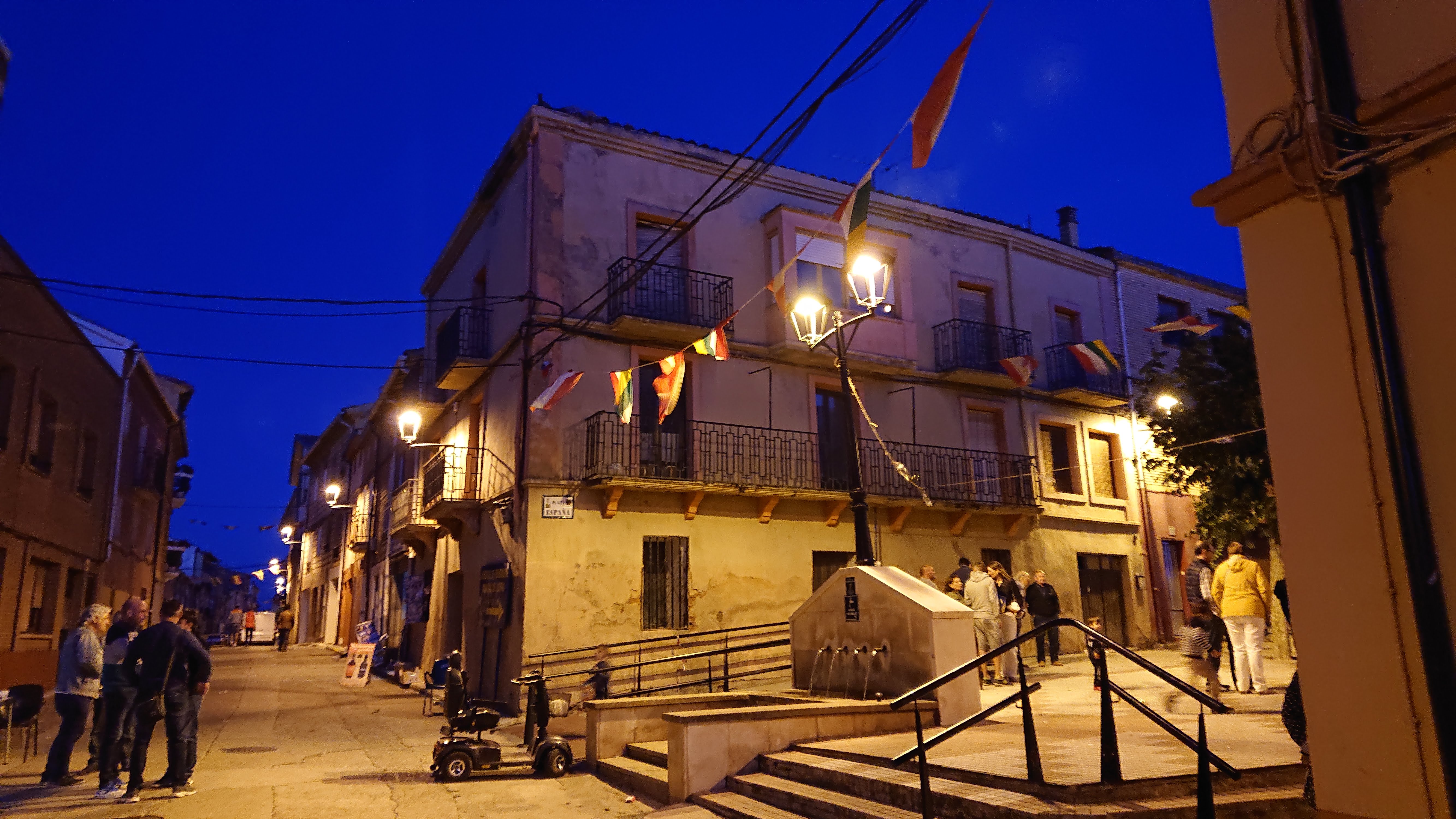 When our usual random group of pilgrims had finished our meal it was dark outside and the fiesta was louder and more lively. Good idea to set a silent alarm on my Fitbit for quarter to ten every evening, or I would have lost track of time and arrived back to the albergue too late …