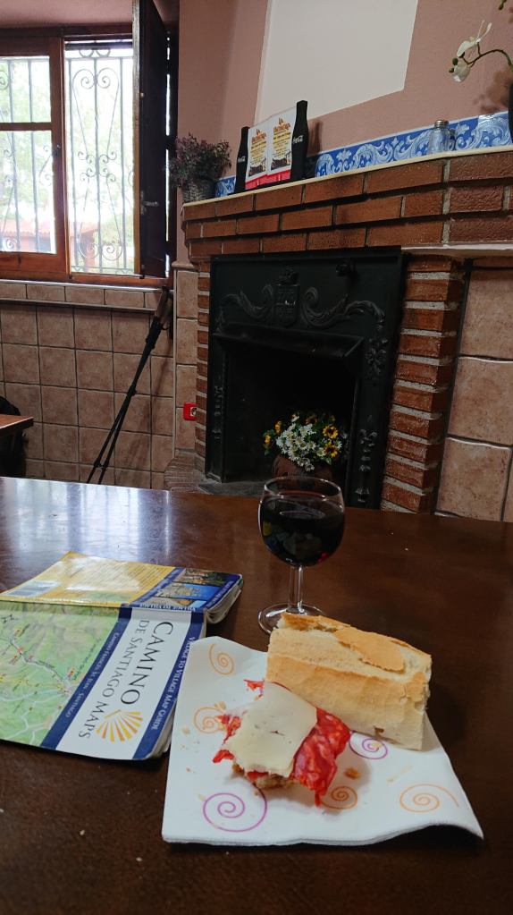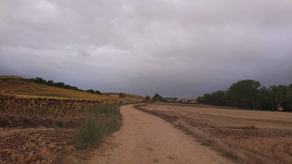 It was a miserable day. Seems I got my grump on a day early – what I wouldn’t give to have that last morning back! It was a full pilgrim hat-trick: wet, windy and cold. And grey. And just miserable. But the way won’t walk itself, and everybody else is having the same miserable weather, so after a long, purposefully drawn out breakfast, off I reluctantly went.
