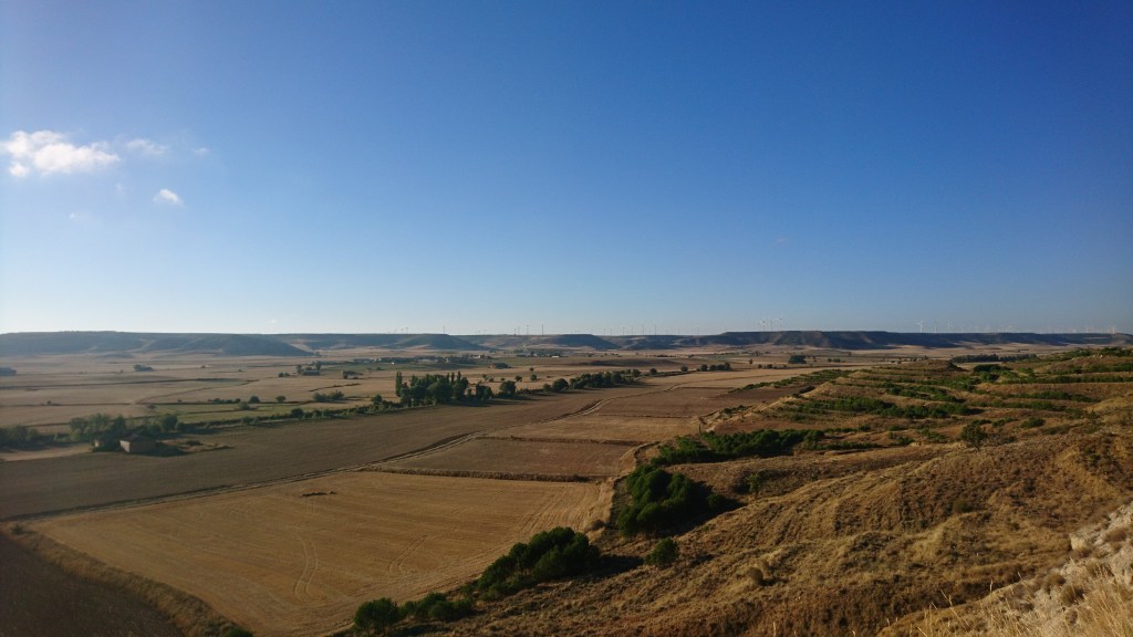 And as the man said: What goes up, must come down. On the vast and flat meseta, the camino obviously has to go up and over the only hill for miles around. The trail is steep on both sides, and my knees protest at the downhill slope, even with Pacerpole handbrakes. But the views are as always worth the effort!