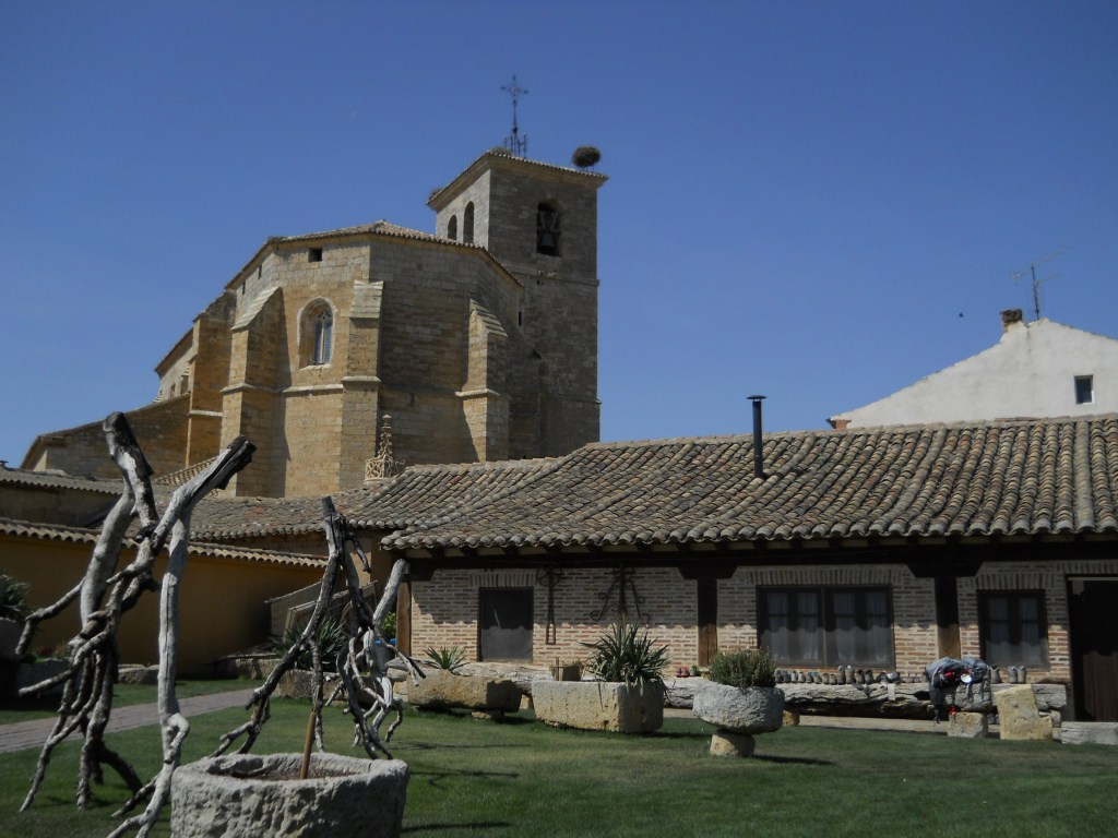 The promised rain stays off, luckily. About half-way I stop for a bit of food, drink and rest in the albergue Mochila in Itero de la Vega, where I see some faces from this morning and join them at their table in the green and graffitied outside space. The sun is heating up by now and moving on gets harder the longer I leave it … and I am not the only one going to Boadilla, one of my all time favourite albergues, so I best get going if I want a bed. (If I don’t get there in time, I have decided I will happily pay for the hotel next door and get my laundry done as a treat.)