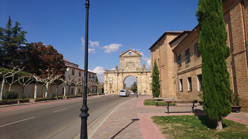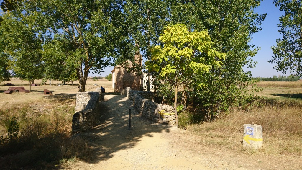 Outside Sahagún is a small chapel surrounded by trees, and two stone statues either side of the trail marking the official half-way point of the Francés. In Sahagún you can actually get a half-way certificate too, from the tourismo just as you come into town.