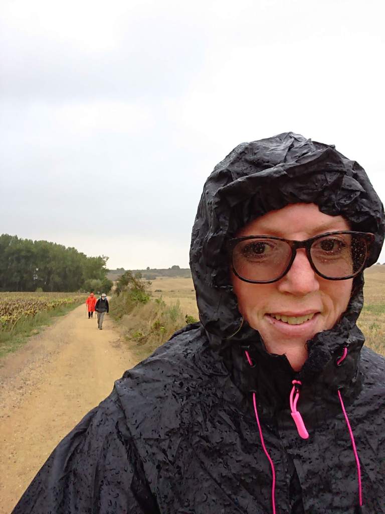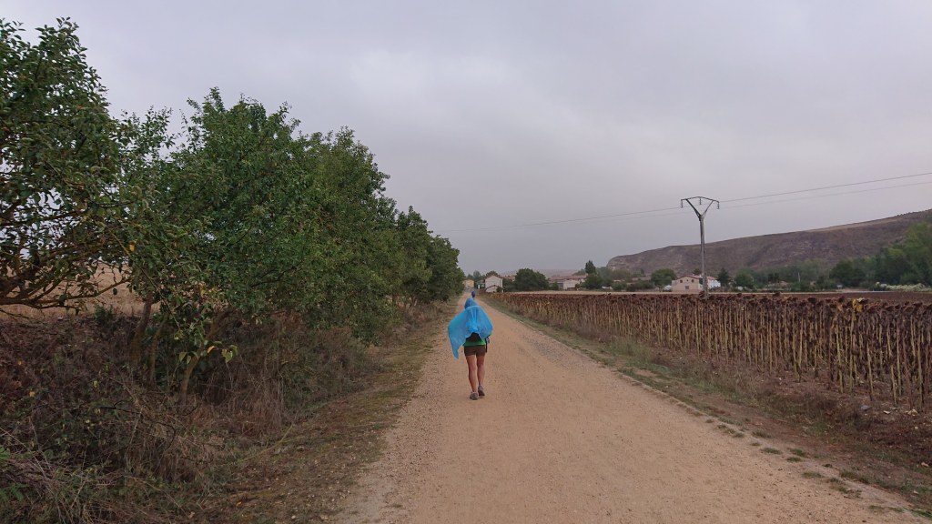 Just as I am getting dry again it’s time to move on. Another 6+ kms of not very interesting walking in the heavy rain, and I am done for the day.