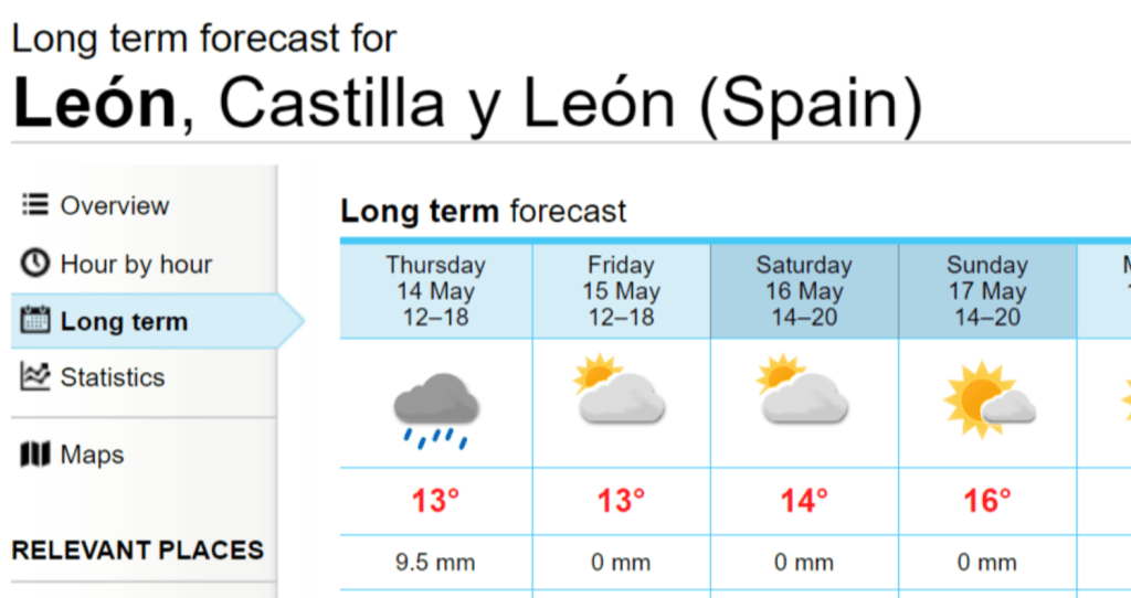 So when I wake up in Reliegos and hear that wet drumming on the window again, I grab my long tights, my long sleeve merino top, my guidebook, and a large café con leche in the little bar/communal room. I need to weigh up my options. (One of which being to have another coffee and a piece of tortilla, so I do.) I could spend all day in Reliegos? No, I have spent enough time locked in and/or out of establishments in Reliegos to know that the novelty will wear off pretty quickly. And Reliegos isn’t exactly a major transport hub so no easy access to buses or trains, which would be tempting. I am sick of the weather, but not of walking, or pilgrims, so the solution is clear: I’ll simply Not Not Go to León! I hit the booking.com app, and after a few taps I have a new plan. Then it’s time to reluctantly go.
