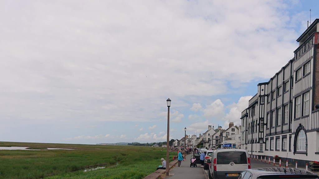After about 8 km we came to lovely Parkgate, which used to be by the river until it changed course, and the marshes are now a protected habitat for birds and wildlife. It always attracts big crowds in the summer, when families come down to walk along the parade and have an icecream or a pint overlooking the estuary. None of us wanted to go into a shop or pub, though there were some sitting outside, but we managed to find a bench and had a quick rest and refuel.