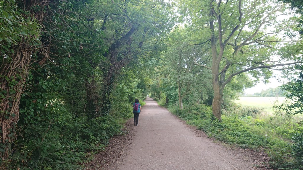So when a friend asked if I wanted to come for a walk, I jumped at the chance. Turns out she had never walked my regular training path, so we decided to meet at the station at the end and walk to the estuary and back. It’s a walk I have done so many times before – but with lockdown I haven’t done it since we came back from Spain in March! I got all excited about packing for a 16 km, three hour walk … I had bought a 15L Alpkit pack for zoo trips, just before the zoo shut because of the pandemic, and finally bought myself a Purple Rain Adventure skirt for the cancelled walk in May, which arrived shortly before lockdown, and it was high time they came out with me. Also – poles or no poles? Poncho or no poncho? Which mask to take? (I now have several.)