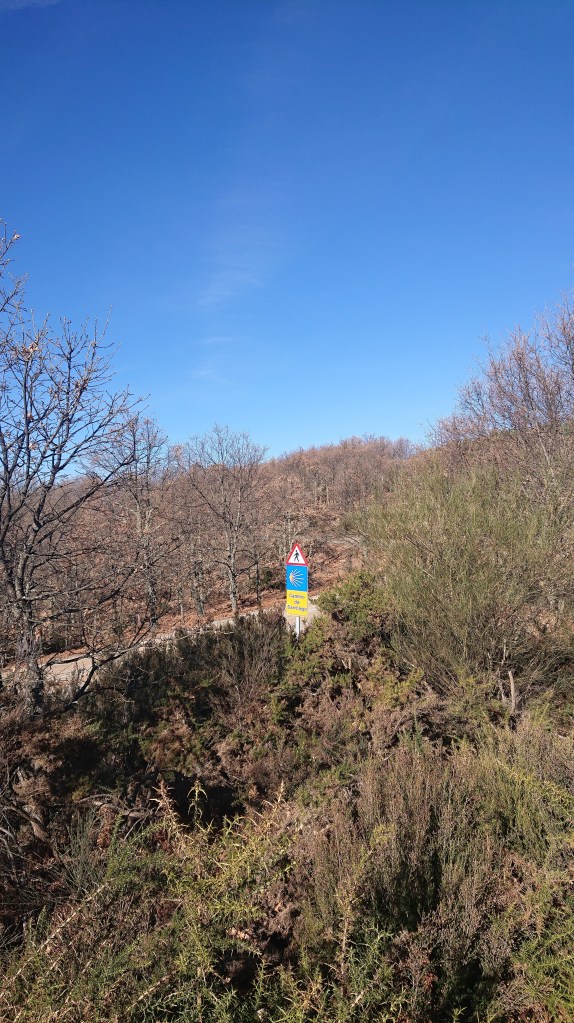 One bit of this trail that hasn’t been levelled out and made safer, is the stone strewn rock slope on the way down to Acebo. It takes time and focus to get down it safely, and I’m not sure if it was lack of stone strewn rock slope training, or the heat, or a touch of dehydration, but it felt a lot more difficult than it had before. The Scouse Spouse had a few missteps, but he soldiered on. Luckily this bit was still safe and flat and wide, so we got a breather. That last hill was challenging though.