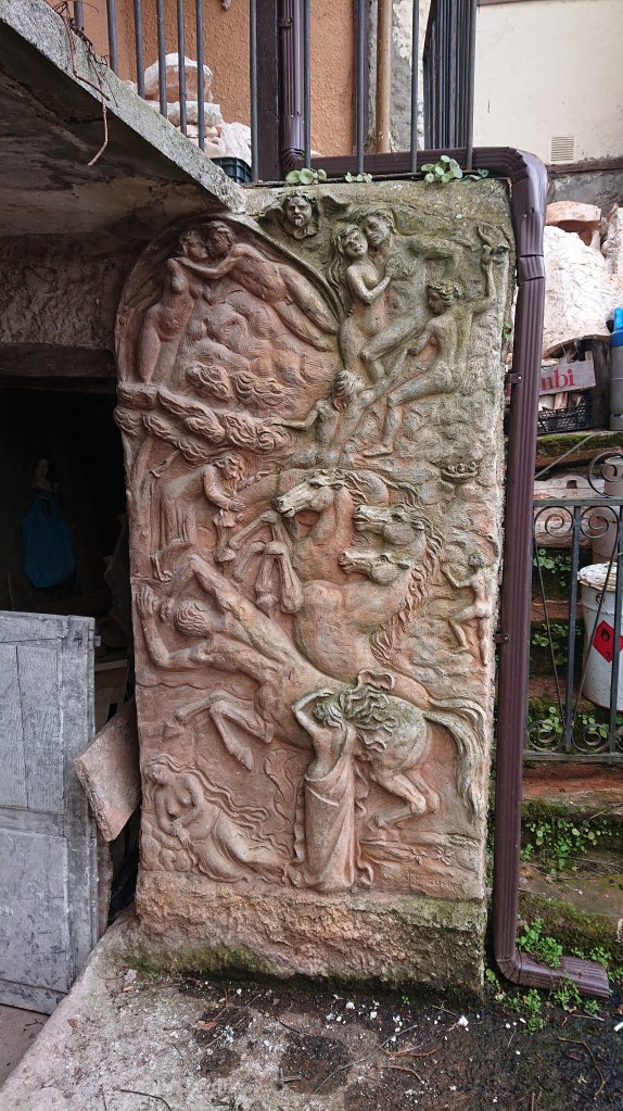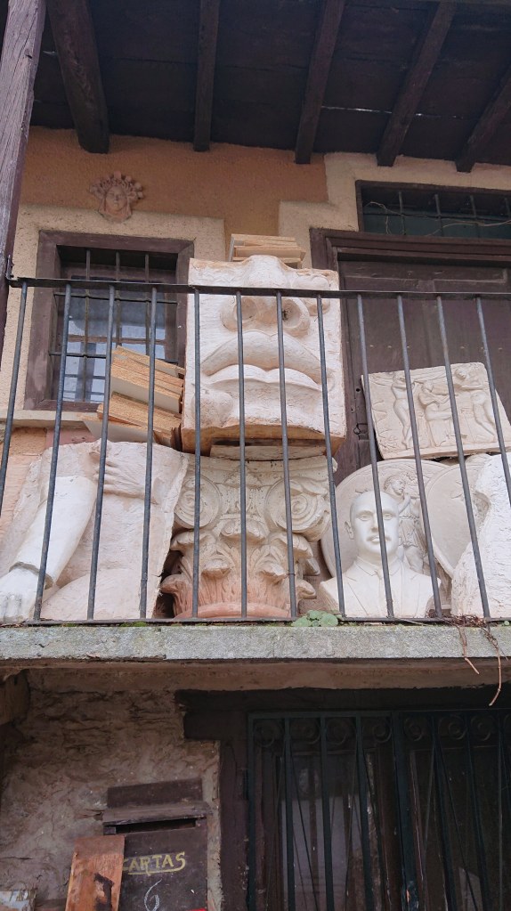 And a wealth of statues and stonemasonry stacked up behind one house.