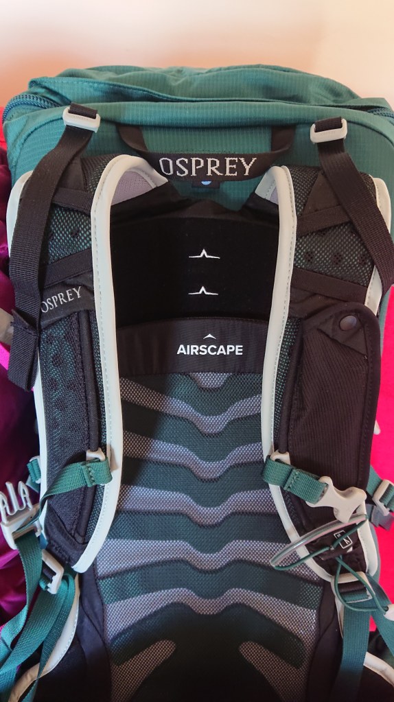 Update: I have since managed to try on the smaller size, XS/S, and though the pack body was the perfect size, back length wise and also capacity for a camino wise, the padded shoulder and waist belt was on the small side. If you want to try it, which you definitely should!, and you have both sizes available, don’t let the XS or L portion of the size name put you off – try them both and adjust them as needed, you might be surprised. Or why not try the men’s Talon version, which comes in three sizes.