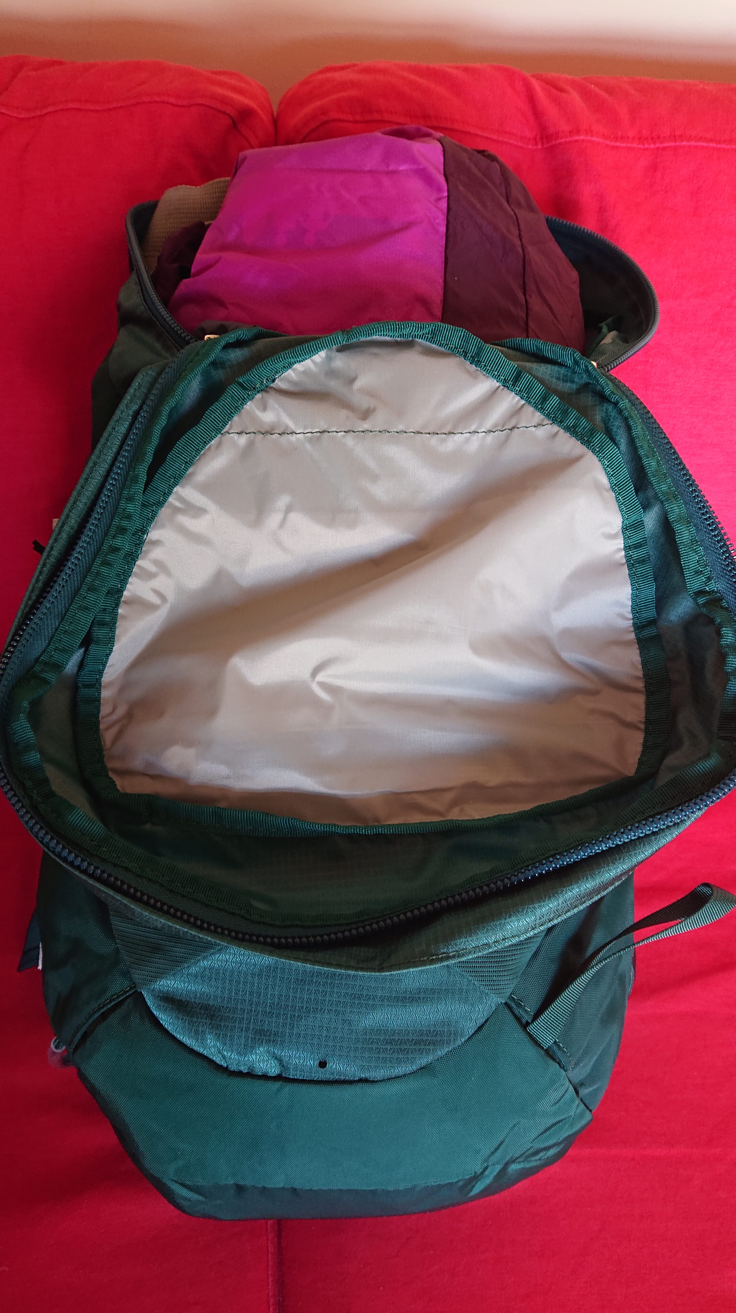 The new line of Osprey Talon and Tempest packs is out, and in addition to the normal volume sizes there is a new bucket zip opening Talon 36L and Tempest 34L version. I have always wanted a zip opening Tempest, so I had to have a look! The pink pack in the photos is my first edition Tempest 30L, this green one is in the third version of the line (as far as I know).
