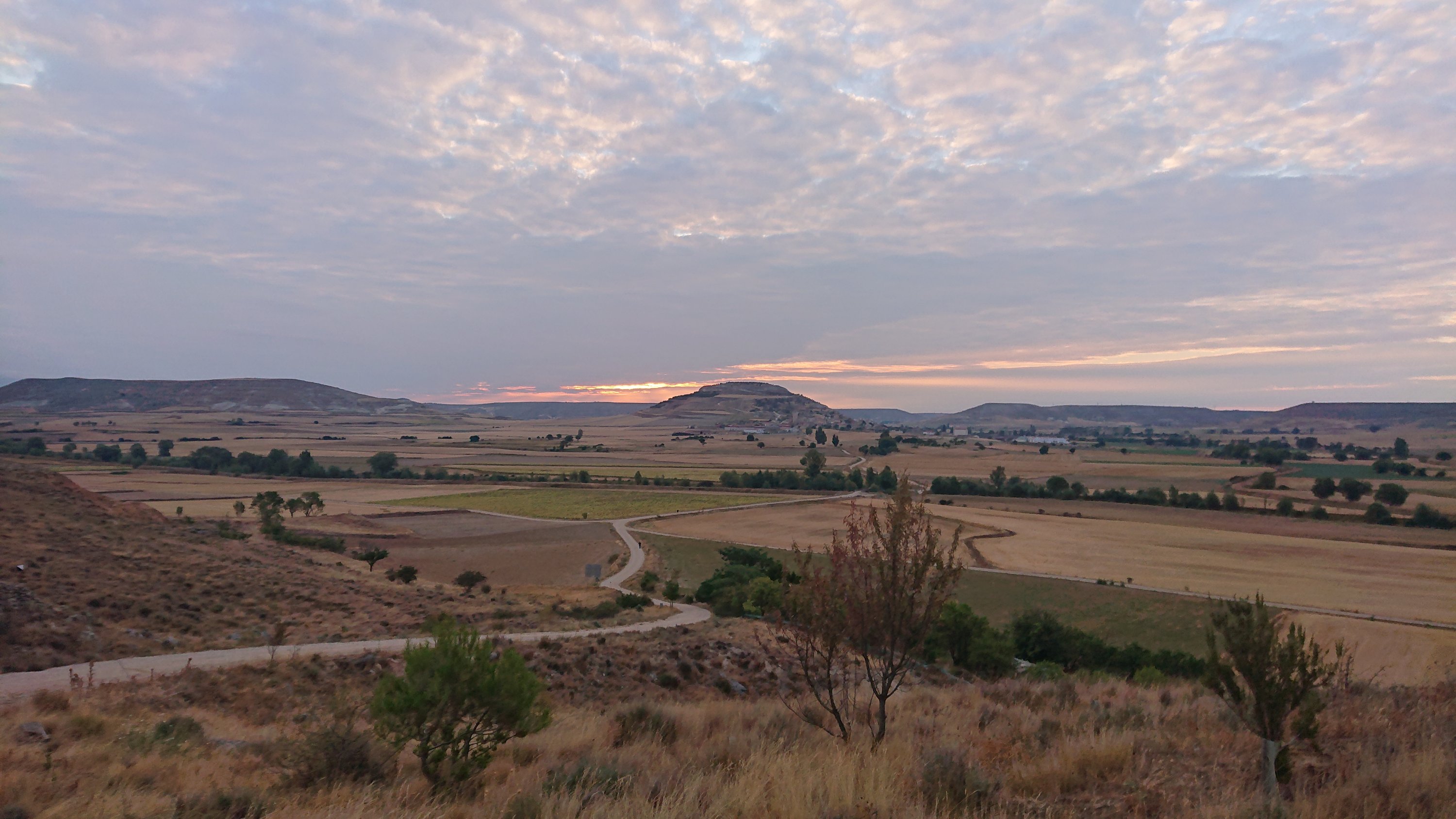 Leaving Castrojeriz there is nothing else for it than to go up and over that hill. You can see it for miles before you get there, and the sign warning you about the 12% incline is not adding to the enthusiasm. The first time I walked over it I wasn’t aware it was coming and had done some light roadside surgery on my heels the night before. (Not recommended.) I don’t actually mind it now, because I know the views are marvellous up there. So up I went, stopping every so often to enjoy the view and the sunrise over Castrojeriz (read: get my breath back) and taking it nice and slow.