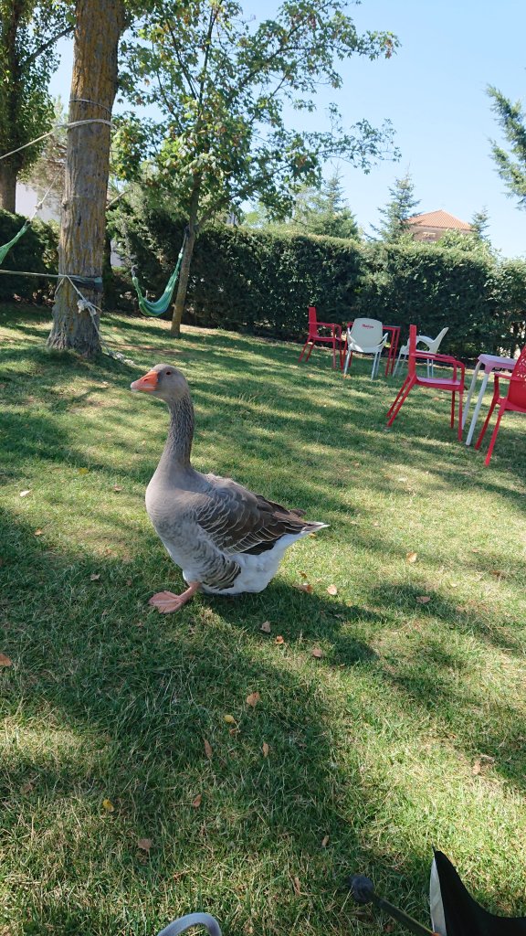 We had a quick stop in Villamentero, at the Amenecer albergue and farmyard zoo. I am glad they didn’t serve food, because first the chicks and then the geese wanted whatever edibles we had and they were quite persistent!