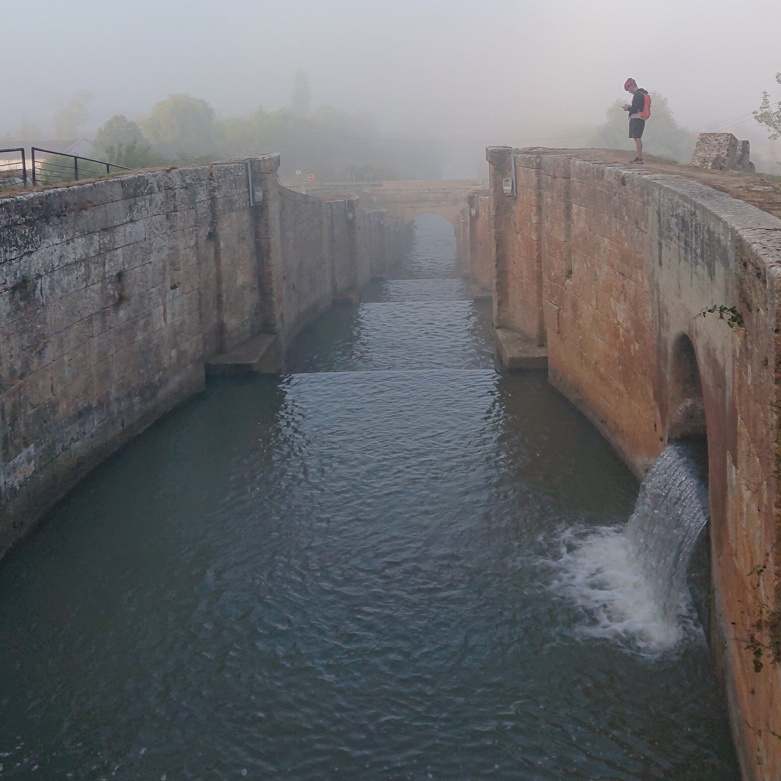 Shortly after leaving Boadilla the camino turns into a path following the canal. In the early morning it was shrouded in fog with ghost trees barely visible on the opposite side.
