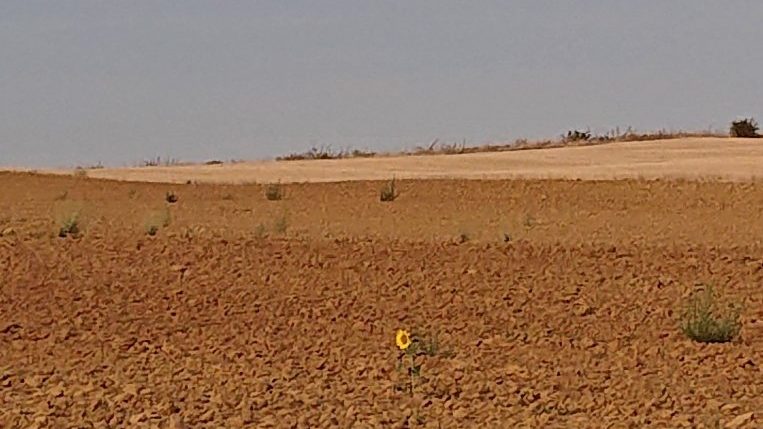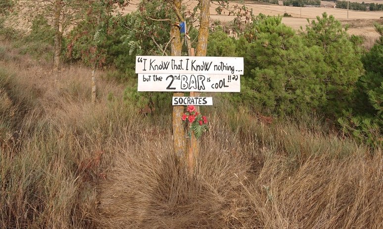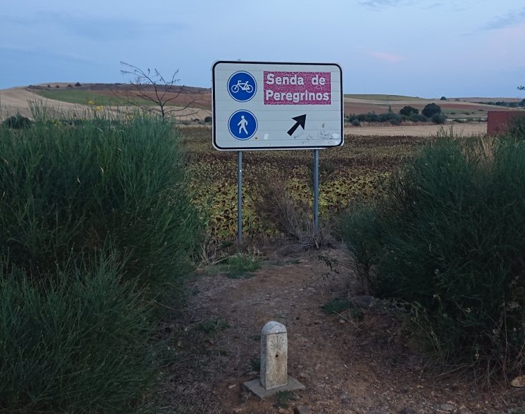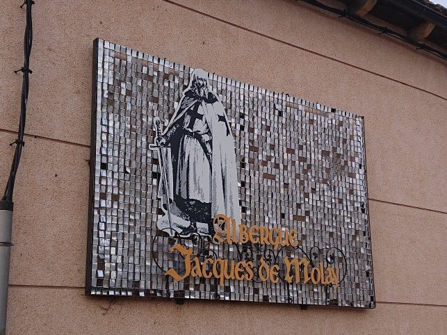 I could see someone in front of me, but most from La Morena had already left. So I crunched along on my own, assuming I would catch up with people in the next stop, a second coffee at Terradillos. But it was closed. So I carried on past the very bling Jacques de Molay albergue, where there were no pilgrims either, to Moratinos, where I sat down for an Aquarius.