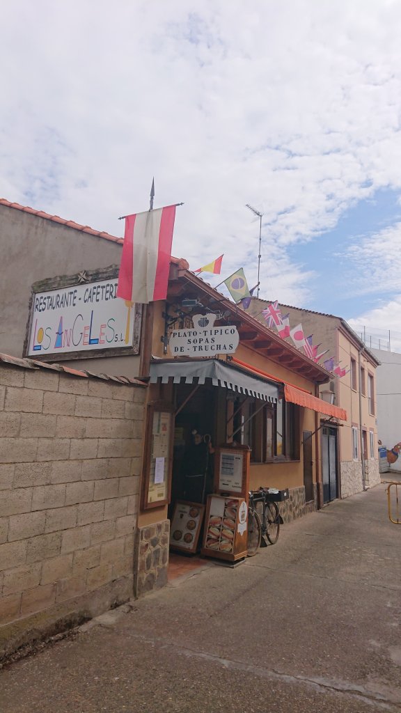 After my meal I was sitting outside with a drink when I thought I saw a face I recognised. She was moving up the street at a fast and determined pace and my brain scrambled for her name, but too late – she disappeared into one of the other albergues opposite mine. I didn’t want to break in there after her, so instead I tried to find out where pilgrims tend to gather for their meal, but there didn’t seem to be a particular place. I did discover that a lot of them gathered for drinks in the garden of the pizza place across the bridge though.