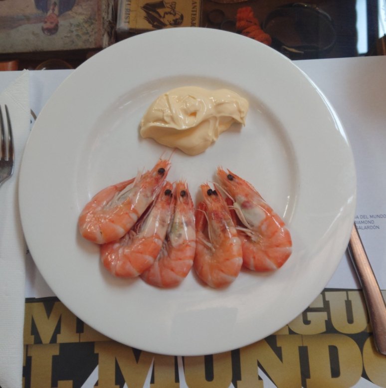 He told me the Los Angeles restaurante would be serving food if I hurried, so after a quick shower I ran off with wet hair and made the kitchen opening hours. I got the menu del dia and this was the first course: