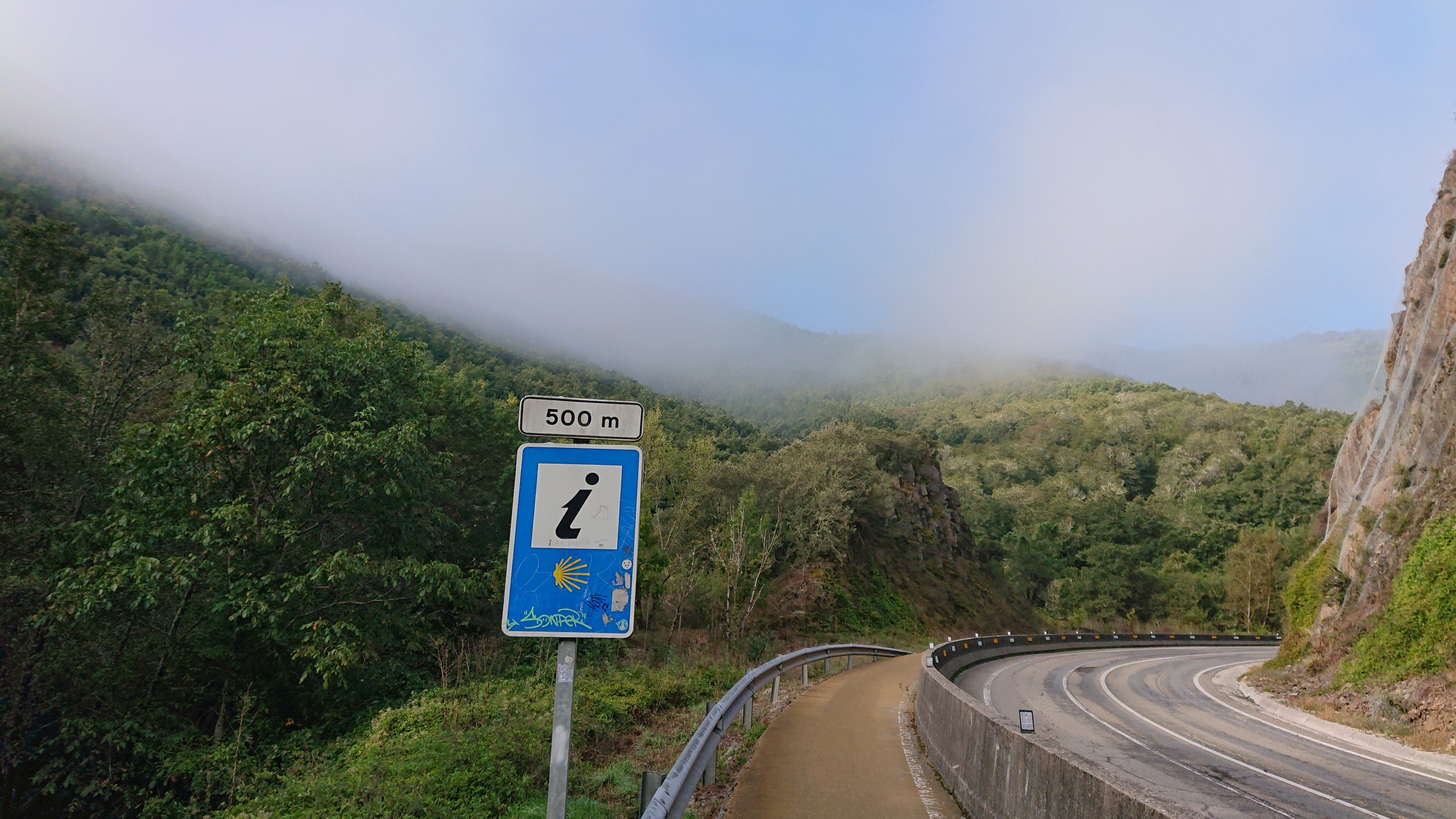 Fog hung low over the hilltops but the sky was blue and it warmed up nicely, so even though I was following the boring road it was a good day on the camino.