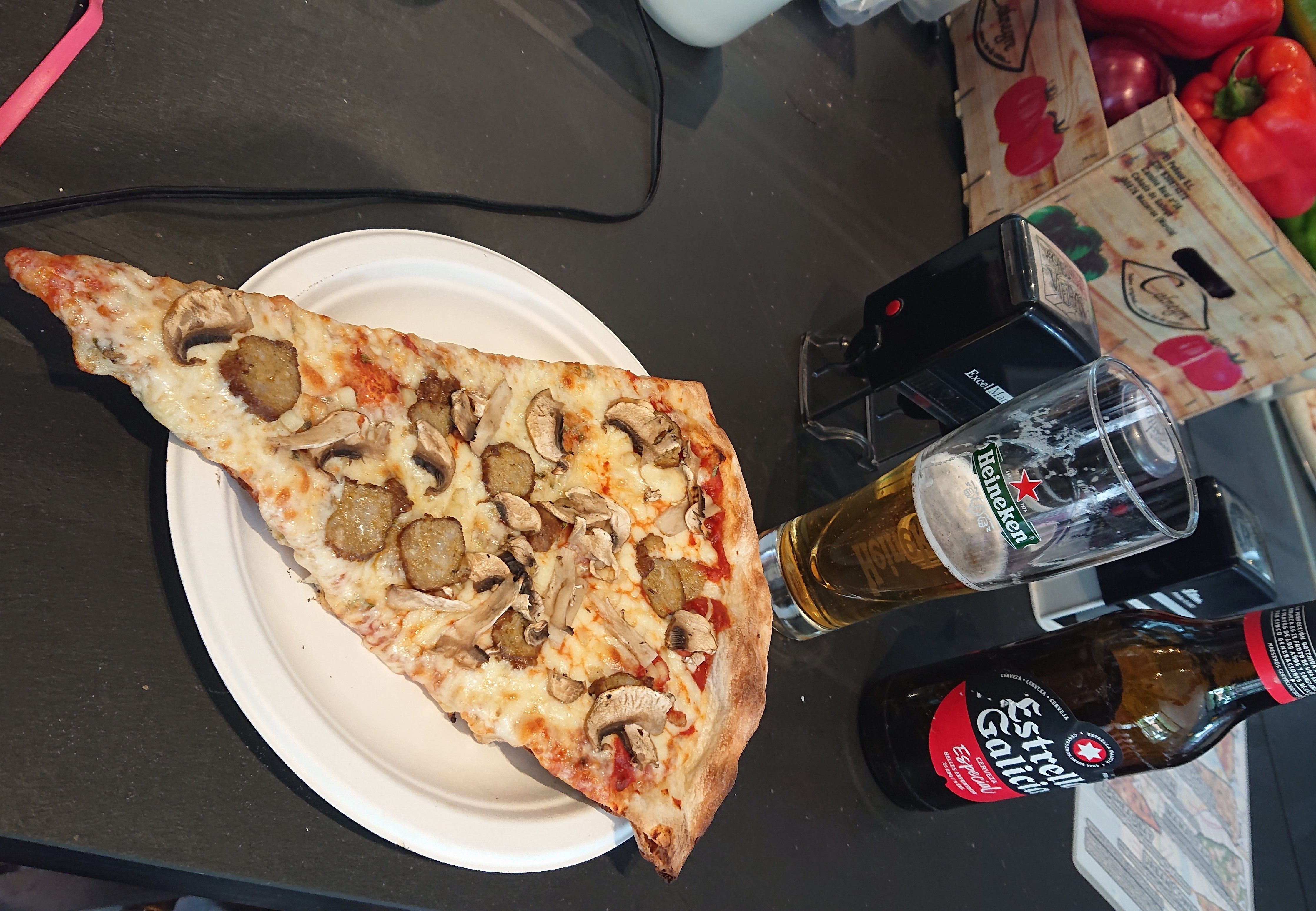 Another place I had wanted to visit was the newly started Rock’n Roll Pizza place on the way to Ambasmestas, the Vagabond Vieiras in Portela. They must have just opened as I passed, as the place was empty and the chef was busy prepping. Still, he made me a slice of meatball pizza, which I enjoyed with a small beer for my lunch. Absolutely recommend stopping there and not just passing by, like my fellow pilgrims did!