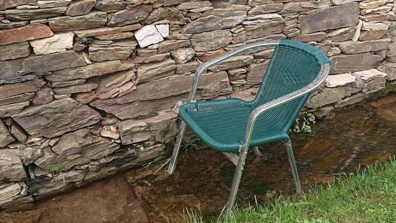 Well worth it to end up in the warm welcome of El Paso albergue in Vega though, where a chair was still standing mid stream for pilgrims to cool their feet after a long walk on tarmac. This is one such chair three years ago, with my friend Yogi in it, being spoonfed sweet rice pudding by the hospitalero: