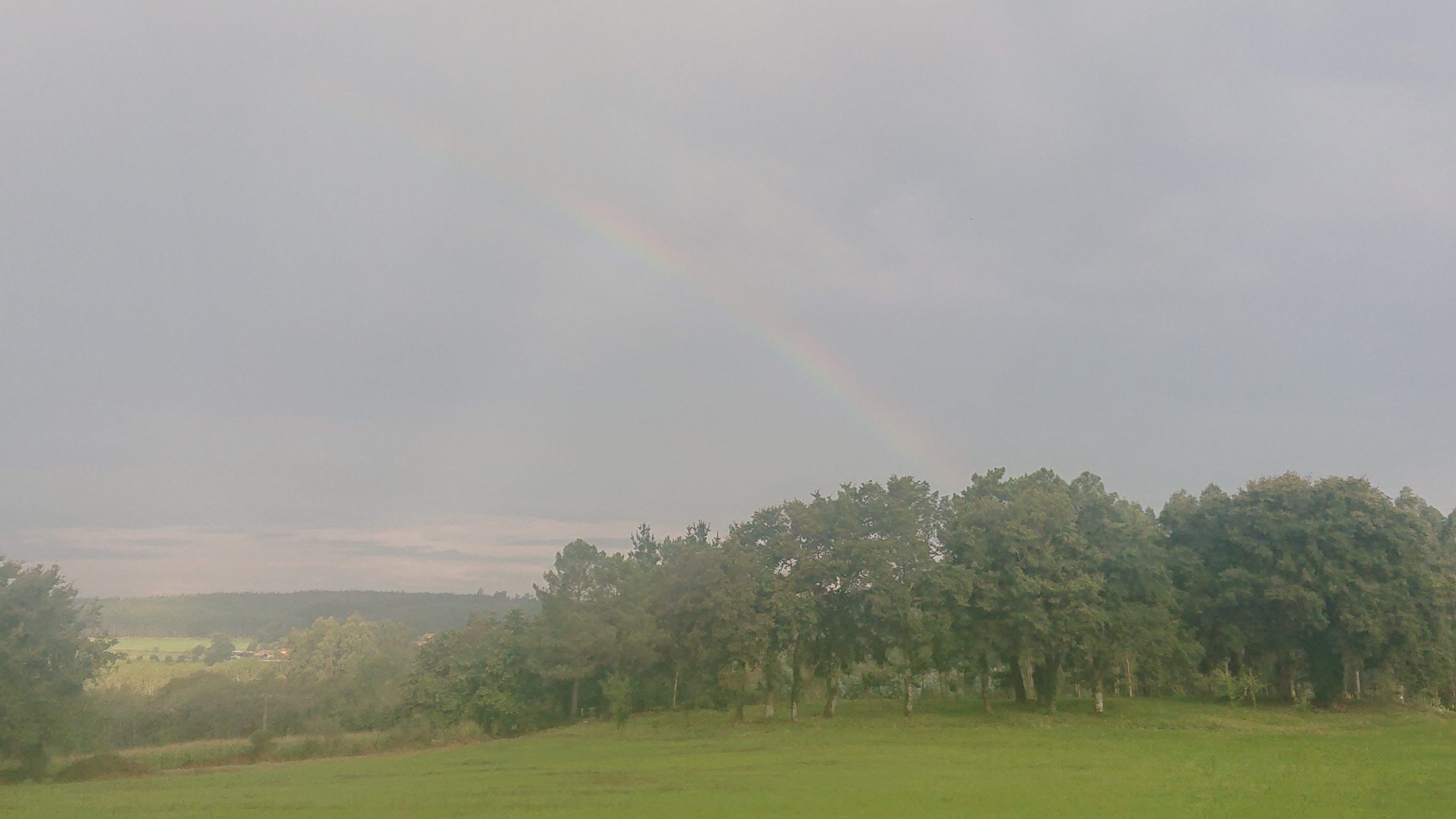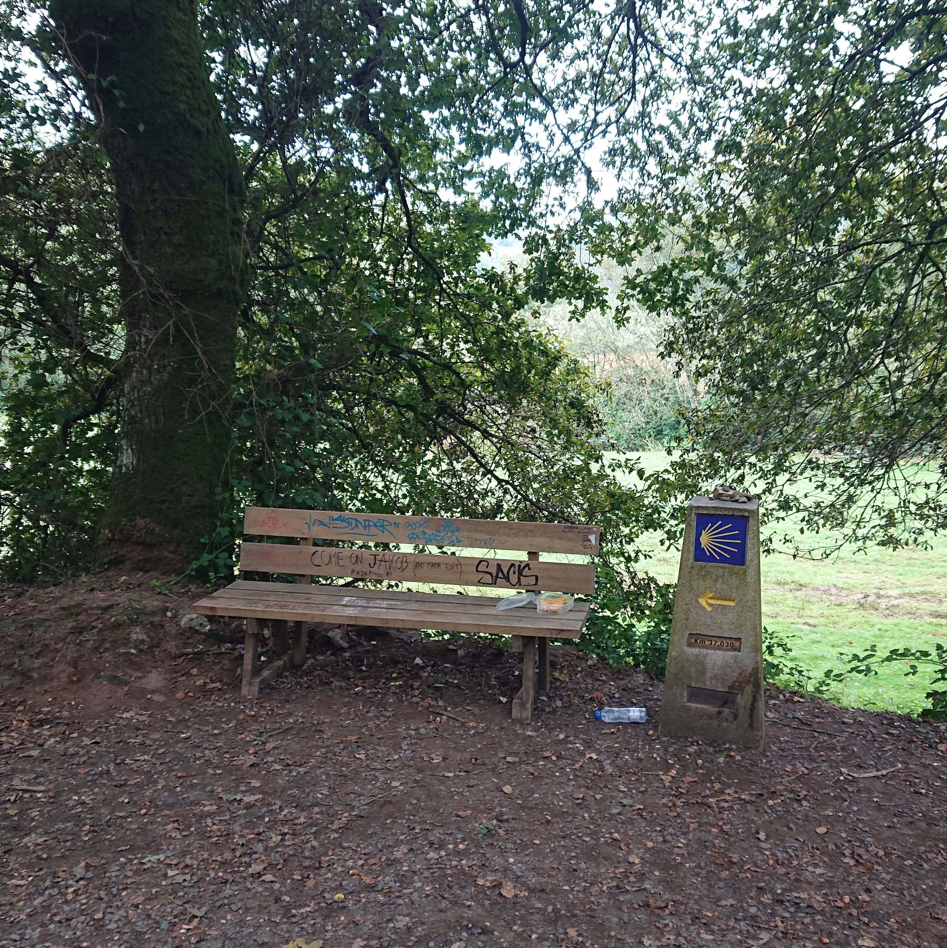 When I woke up, there was only me and two other pilgrims left in the room, one of them was fast asleep. The other one and I got ready as quietly as we could in semi darkness until he woke up and we could put the light on. Turns out my fellow awake pilgrim had a pack absolutely full of sewn-on camino patches with routes and distances! I had no idea what nationality he was or what language(s) he spoke, so I just pointed at the pack with a smile and said: “You have been walking far.” He replied with a thumbs up and a wide, happy smile and quickly tied his laces before he hurried out to walk some more. It reminded me of José, the Spanish pilgrim I met in Melide and Arzúa in 2019, who made his own gear, walked all the caminos he could and sneakily paid for my breakfast in the café on the plaza. I had breakfast there again and imagined he is still out there somewhere, sauntering along.
