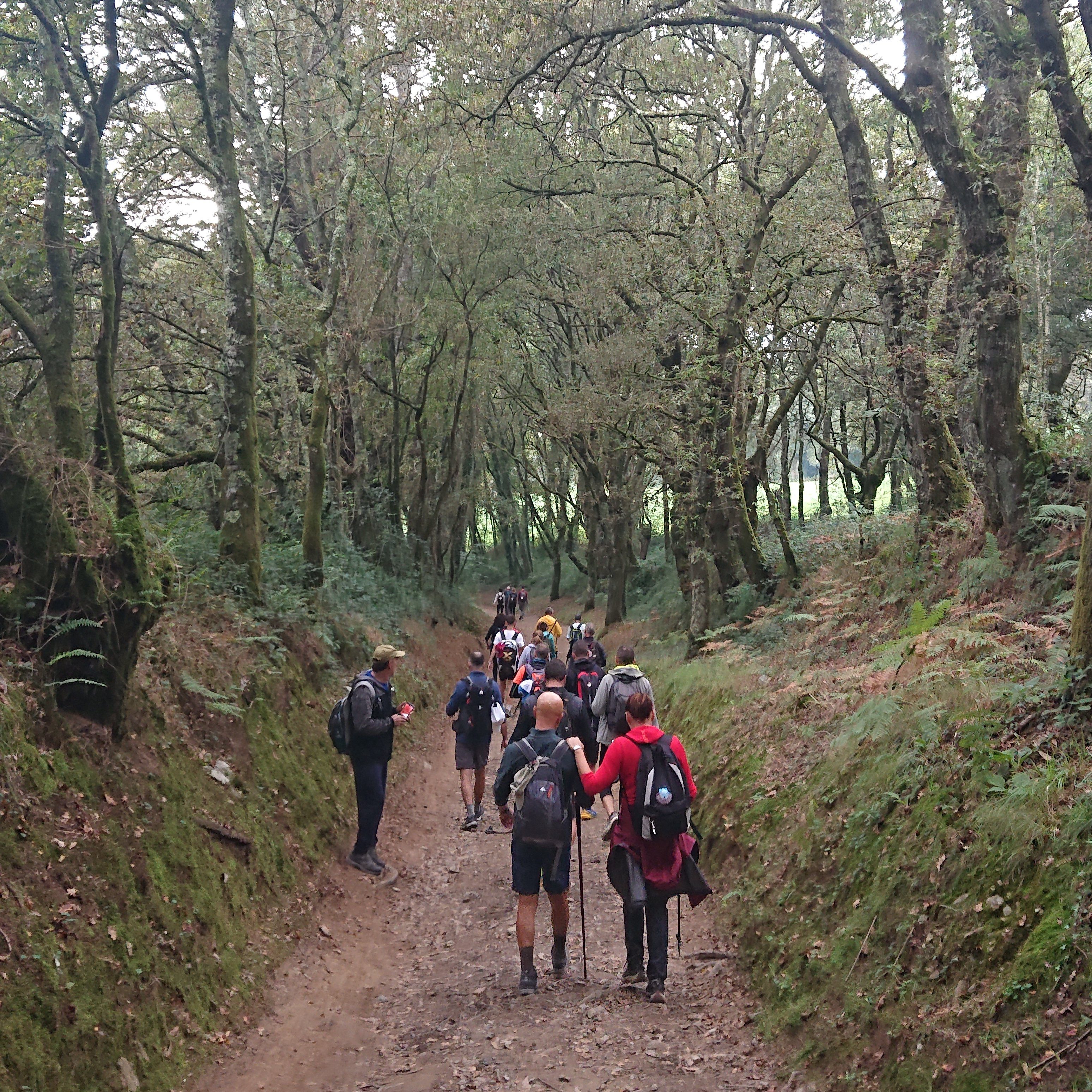 The crowds were getting ridiculous. I know it’s a Holy Year, and apparently there was a Spanish holiday that last week with lots of people wanting to hit Santiago on the Saturday, like me. I did briefly consider A) getting the bus straight into town to beat them to it, and B) slacking a day to leave them to it, but quickly decided against both. A well known pearl of wisdom says that if you can’t beat them, join them, so that’s what I did. Off I went into the misty morning in a loud and cheerful crowd of mostly party pilgrims. After all, any day on the camino beats a day at home working! And a lovely autumn day it was.