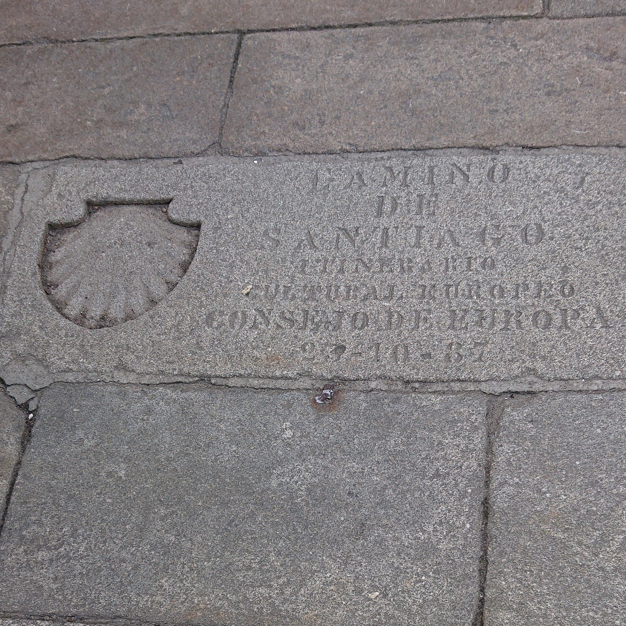 On my way to get some snacks for the long hours on the bus the next day, I bumped into the Musicians again on the Obradoiro square – I always place my hand on the inset shell slab in the middle of the square to mark my arrival and departure, and there they were, with their compostelas! So I had a coffee and croissant with them before we went our separate ways one last time. Then off I went to the bus station, getting there absurdly early of course, but it’s better than being late. The day had started so well, with cotton clouds on a blue sky outside my tiny Pinario window, but by the time I boarded the ALSA bus with my last Aquarius, Santiago was as grey and cheerless as I felt. The Post Camino Blues was already nipping at the edges of my mind, so I got my guidebook out one more time and started on the plans for the next one … Buen camino!