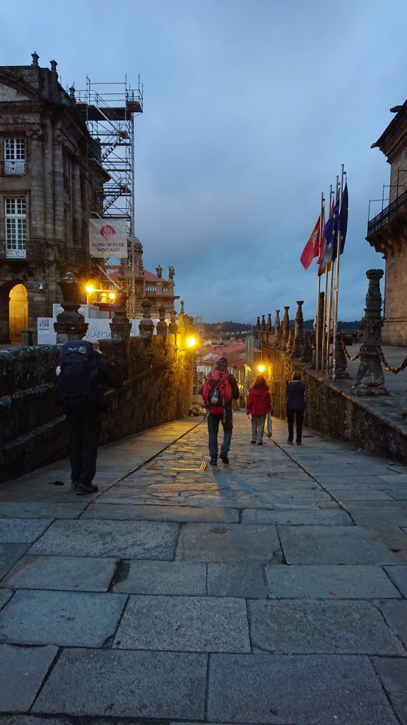 Guests checking out from the Parador Reyes Catolicos, the arguably first purpose built hotel and one of the grandest destinations in town, pilgrims taking the street past the impressive entrance on their way to queue up outside the Pilgrim Office, or escape the city altogether by heading out to Muxia or Fisterra, once thought to be the End of the World. A few early birds were already arriving, presumably from Monte do Gozo, the massive albergue complex up on the last hill before the city. It was magnificent, it was magical, and it was strangely quiet.