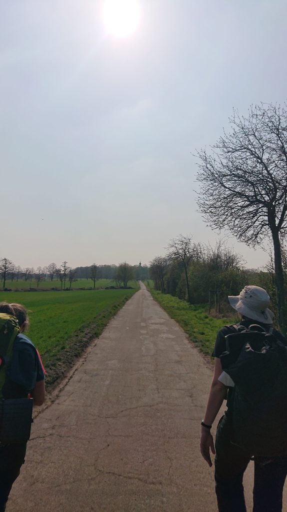 B and I were going 5 km further than our new pilgrim friends, but we stayed together until we reached the outskirts of Brühl, where they were stopping or possibly staying the night. We wished we were… We stopped one last time for ice cream and cold drinks and wished each other safe and wonderful travels. We would happily have stayed and explored Brühl with them – the historical town was very cute – and I wouldn’t have minded sitting down for a meal at this stage. But it was getting late in the day and hot, and we still had over an hour left to go. So go we did.