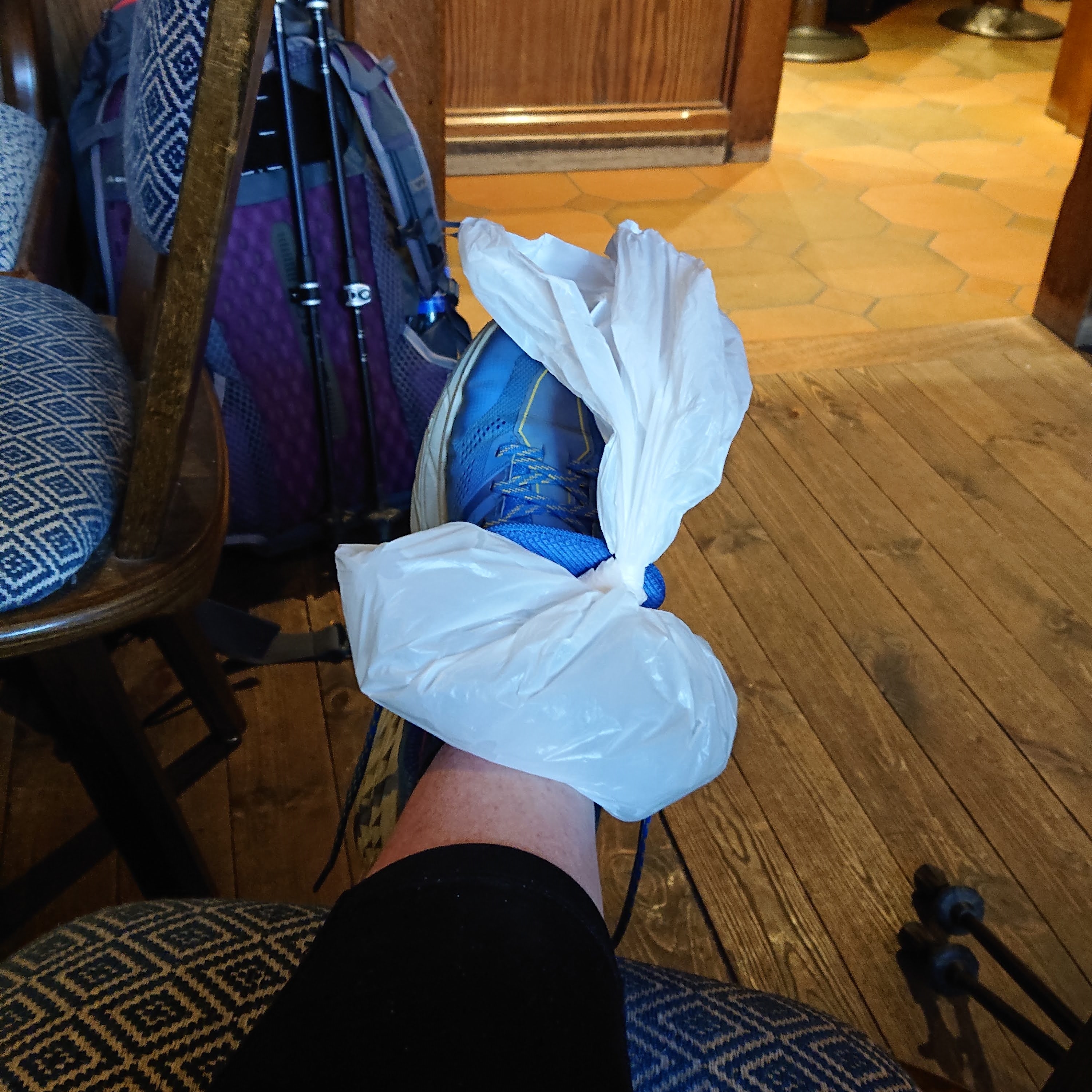 I sat there with my ice, swearing silently in four languages (as you do) and just knew this was not going to end well. In fact I already knew it was the end of the walk. Even if I could manage to walk a bit, no way could I carry a backpack and no way could I go for 20+ kms in the countryside where there was nowhere to stop, get help or meet a taxi if I needed it. I would have to rest it for at least a few days, and what would I do in those days? Get local buses to wherever we were staying and then wait for B all day, making her feel she had to hurry to get there and then entertain me when she did? How early could I check in? What if there was no food there? Or no lift up to the room? And when – if – I got better, would the ankle handle a full day’s walk before I had to turn around and go back to Cologne to fly home? It made no sense. What made this trip special was to spend the day together, walking, talking, sitting down for lunchbox lunches in a sunny spot somewhere, stopping for coffee or apfelschorle when we had the opportunity … If we couldn’t do that, there was no point.