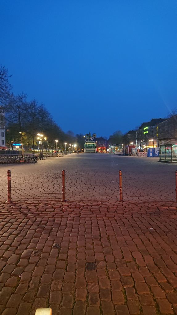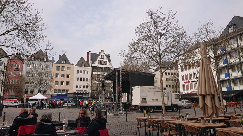 I had come back to Cologne to rest, and that’s all I did: Rested. I got up late, kept my foot up while I considered my options and watched news on the TV (wish I hadn’t), then went downstairs for a coffee, but they weren’t open yet. And there was a huge demo on the square, something political about pay. All the demonstrators looked like nice, sensible, kind people, maybe teachers, carers and nurses, so I say pay them more!