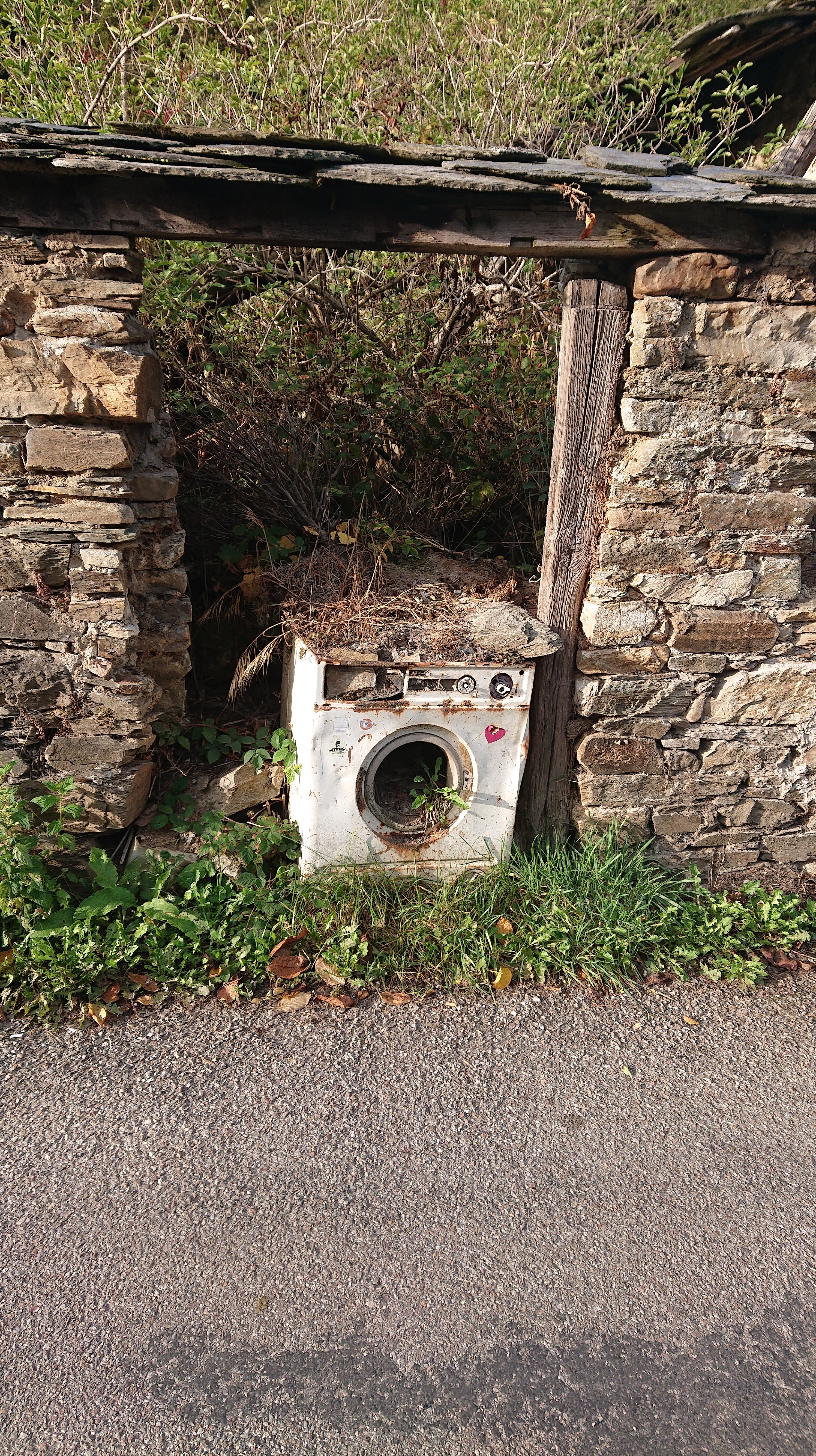 Another late start; I was in no hurry, I had booked a room in O Cebreiro, and as luck or camino magic would have it, they only had a twin so I had a spare bed for a sudden camino companion. It’s only about a 10 km walk, but most of it is very much uphill. And what an uphill! Nicole and I had both walked it before and knew what we had in store, so we had decided to take an easy day and walk up to O Cebreiro together. She wanted to get to Finisterre in the time she had left, so even if that made a very short day for her, at least we would have a whole day together before she zoomed off ahead of me again. I am glad she did, because this was the first time we had a chance to catch up properly. We took our time on the way up and worked with the hill instead of trying to beat it, like some of the other pilgrims do. You can also hire horses in Herrerias and ride up if you prefer. And the washing machine is still there, slowly decaying; one year there were kittens in it.