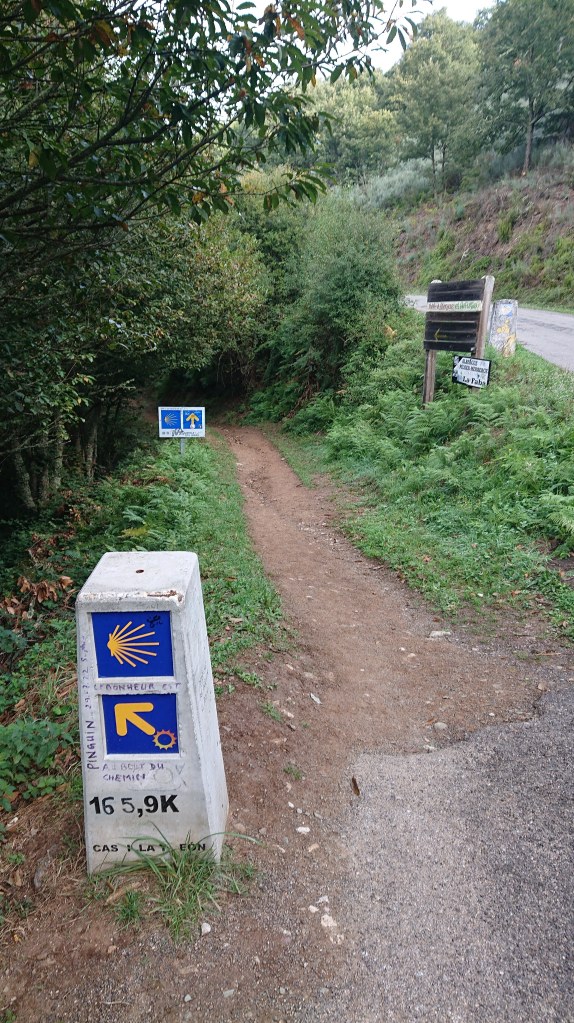 After La Faba the landscape opens up and you can marvel at how far – how high – your own little legs have carried you in the space of a short day, with the hilltops on the other side of the valley and the trail that still keeps going up, up, up. We made sure we turned around often to enjoy the views and took photos of other pilgrims – a great excuse to stop and catch my breath as well!