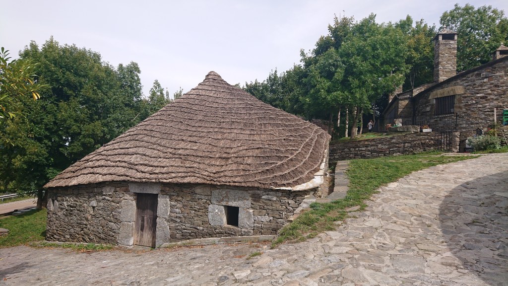 But even if the walk was over, the day wasn’t, and there are few better places to spend a sunny afternoon and evening than the old stone village of O Cebreiro, with its round hobbit looking houses and wide vistas. After rehydrating with an anker bier we went for a snack which turned into a pilgrim menu lunch outside the Casa Carolo restaurant, where we could look out over the Other side of the valley for a change, and met and chatted to the Canadians again. Strange how the camino always finds you immediate friends.