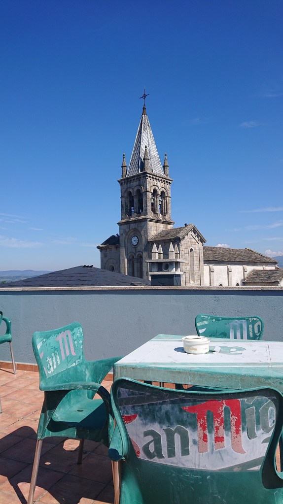 After the massive pizzas, Nicole decided to spend the evening in the albergue and get an early night, as it would be another hot day tomorrow. I went out for a drink and to people watch. There are many (unkind) opinions on the ‘Sarria Circus’; I choose to call it the Sarria buzz, with all the fresh faces beaming with excitement ahead of the start of their adventure. Just as I arrived at the Meson de Tapas, which was full to brimming, one table for four came free. I asked the waitress nicely if I could sit down for just a drink, and she nodded on her way past. I still felt bad for taking up four seats … so first I offered the spare table to a French mother and daughter who had a severe case of the Sarria buzz; I caught familiar place names, which was nice. Also the day’s special looked so good that I decided to have a light evening meal. Have table, will eat, as my new saying goes.