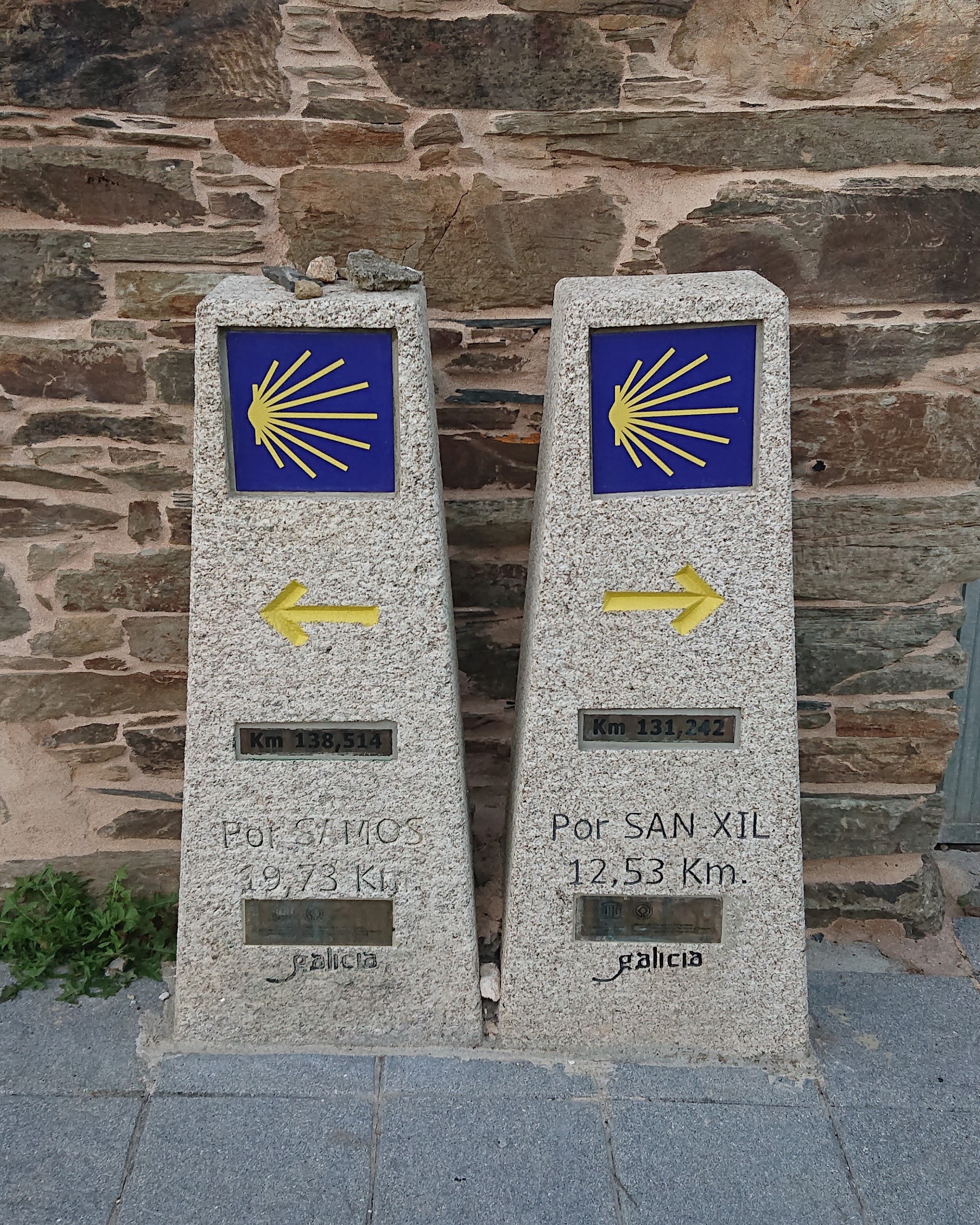Another bright, lovely and eventually very hot day started with a balanced pilgrim breakfast containing enough fat, dairy, sugar, caffeine and electrolytes to last me until second breakfast. Nicole would be on the trail already, though I had no idea if she’d chosen the longer route via the old Samos monastery or via San Xil, so I might or might not see her before the albergue in Sarria. Interestingly the two markers were just outside my window so I could see three kinds of pilgrims passing by: the Samos ones, the San Xil ones, and the ones that didn’t notice the markers and just followed the last lot. Every day someone ends up on the wrong one or have no idea where they are. All part of the fun!