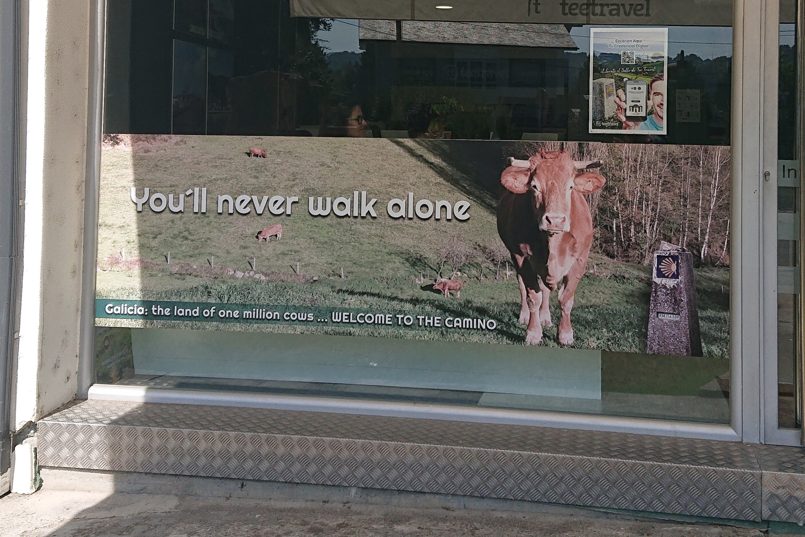 On the way up I met two lovely ladies who had seen The Clapping event the day before, and had lunch with them at Casa Franco. I didn’t stop at the hippie oasis though, as it is normally very busy … but I did stop and have a chat to the Harley Davidson cows! Nearer Sarria I discovered that the wonderful Paloma y Lena albergue was closed and for sale – such a shame. I made a mental note to put the lottery on as soon as I came home. The phone number is below if you have already won …