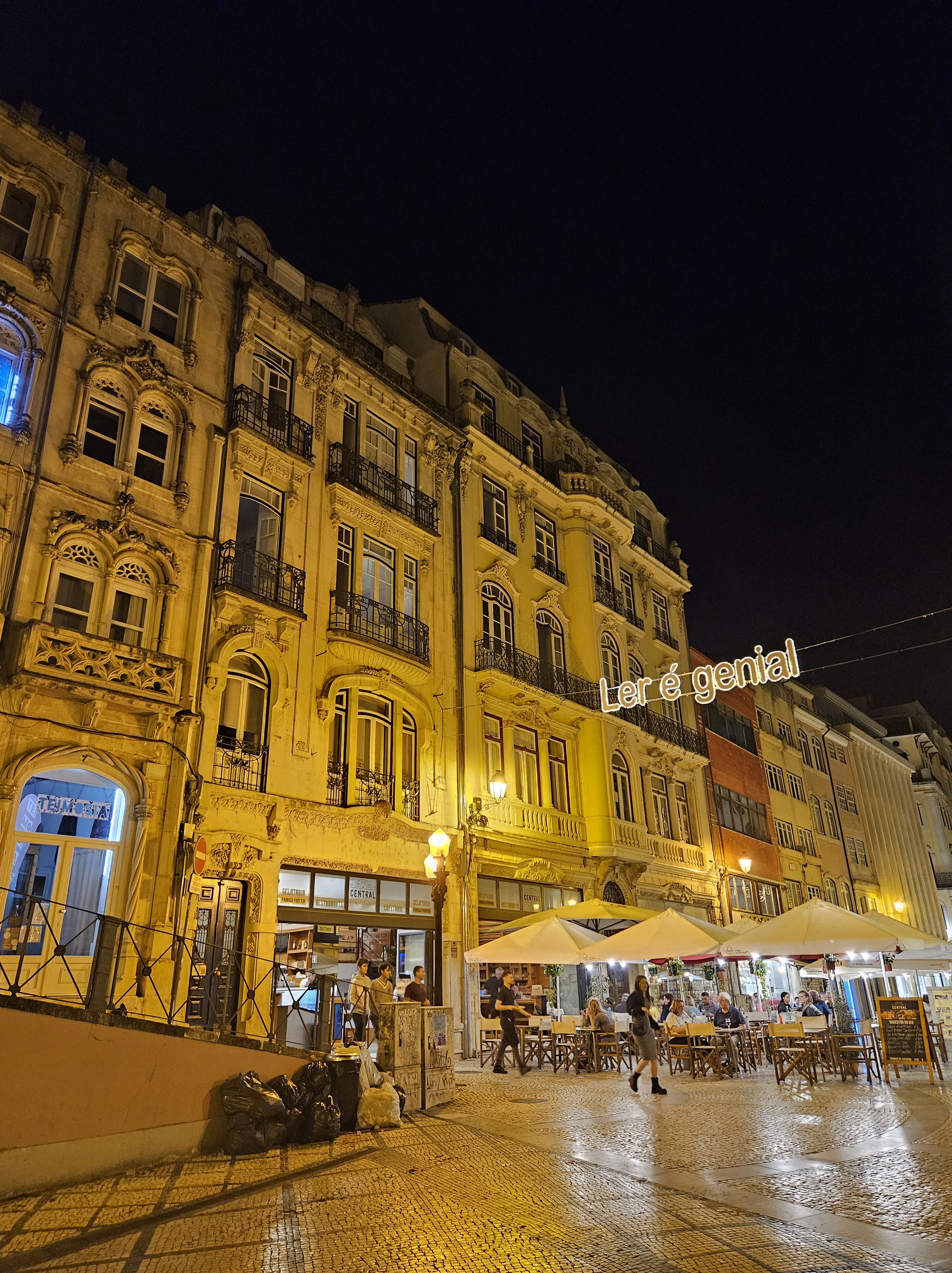 Coimbra was hot, so we didn’t feel like running around too much. It was also too hot for me to sleep in the attic room, so we did our first rejig of furniture in the flat – it would not be the last. All sorted for the night we went out for a stroll along the main streets, which were lit up with reading slogans at night, to celebrate the local library’s 100th anniversary. To read is to travel, reading is magic … I couldn’t agree more!