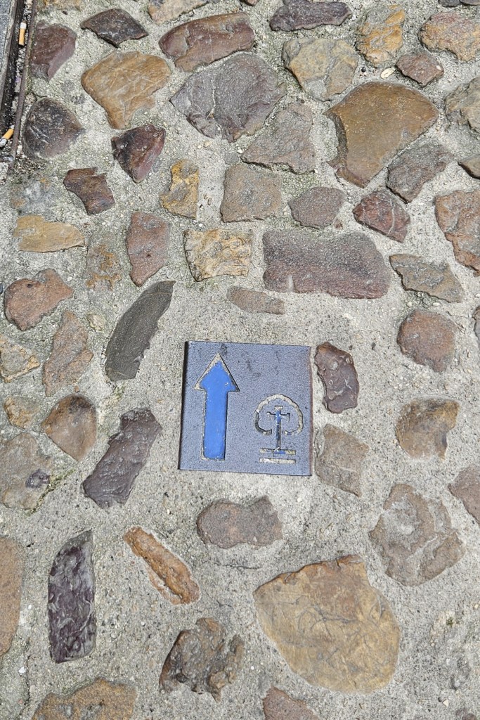 The next morning, after dithering about packing – Nanci’s suitcase, the Beast, was full to the brim after her Cinqueterre visit before arriving in Porto – we bimbled out for some breakfast. Down one of the streets leading to the riverside we found a café with smashed avocado sandwiches and eggs Benedict, so we started our adventure in style! We also saw our first arrow on the floor.