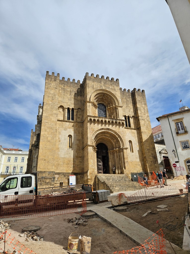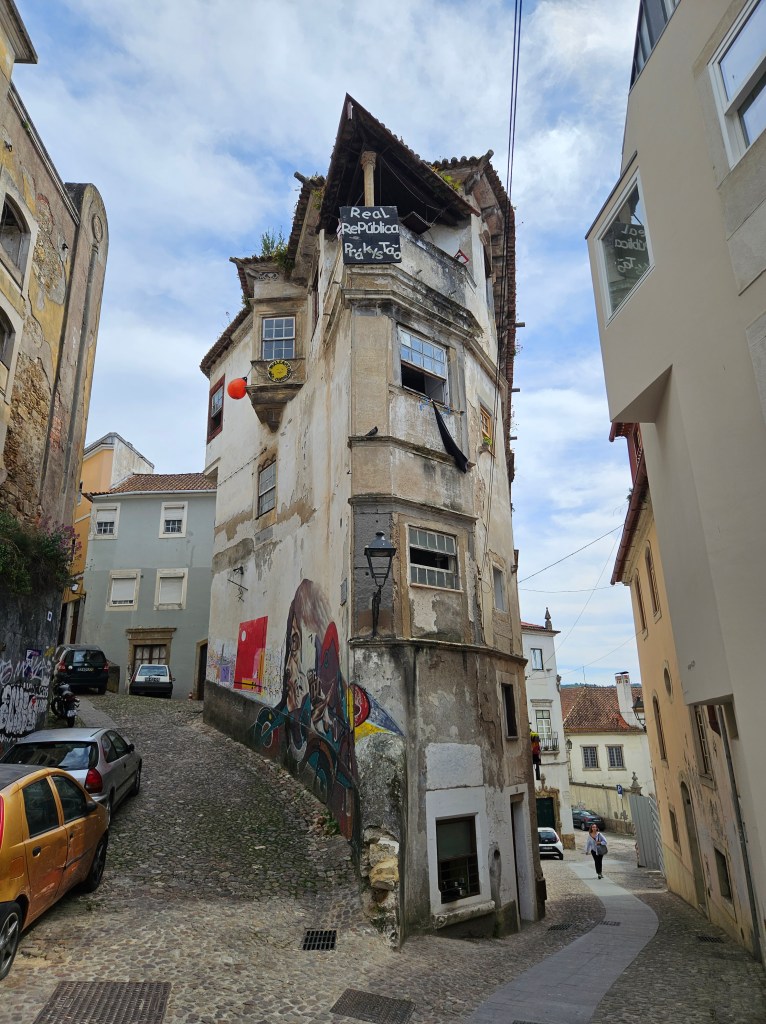 The next morning we had two jobs: Send a box of superfluous stuff to Casa Ivar in Santiago to be picked up when we arrived, and see as much of Coimbra as the heat would allow. We started by having a lovely brunch on the main square, with lots of options like poke bowls, eggs Benedict etc. We’d try to stay off the typically Iberian cake-and-coffee breakfasts for as long as possible. Then we tracked down the post office, which had recently moved, got the actual box to pack stuff in and took it home to start stuffing it.