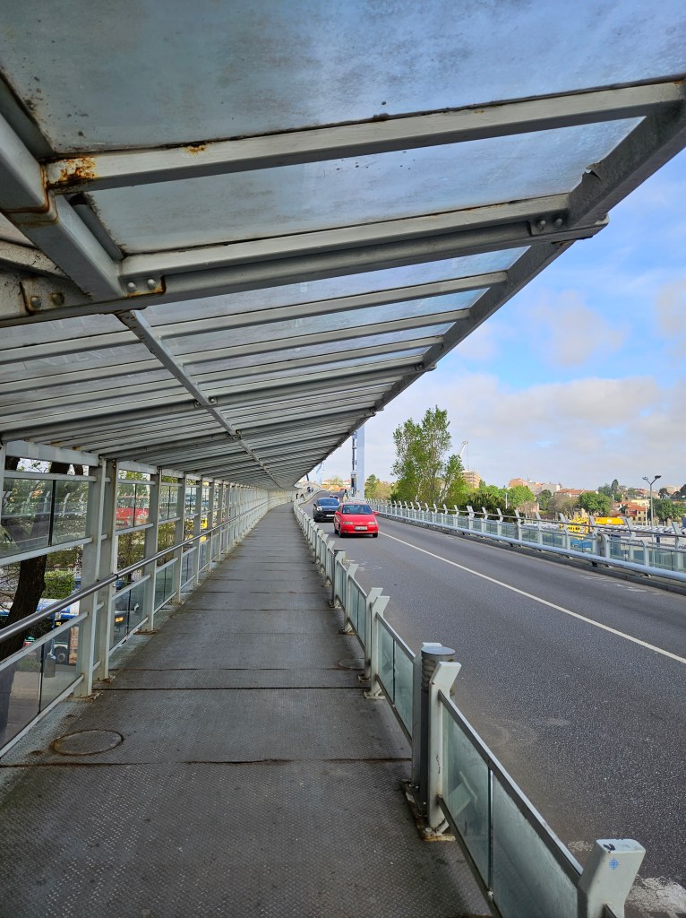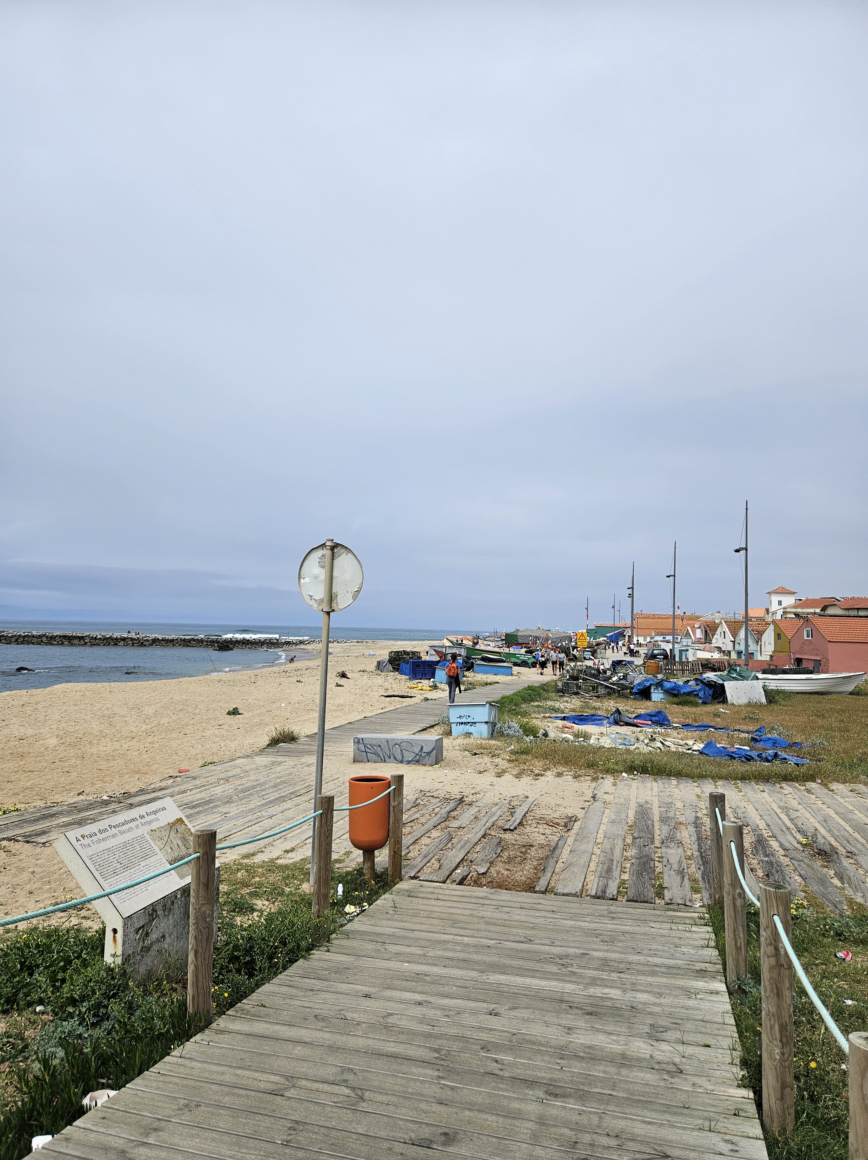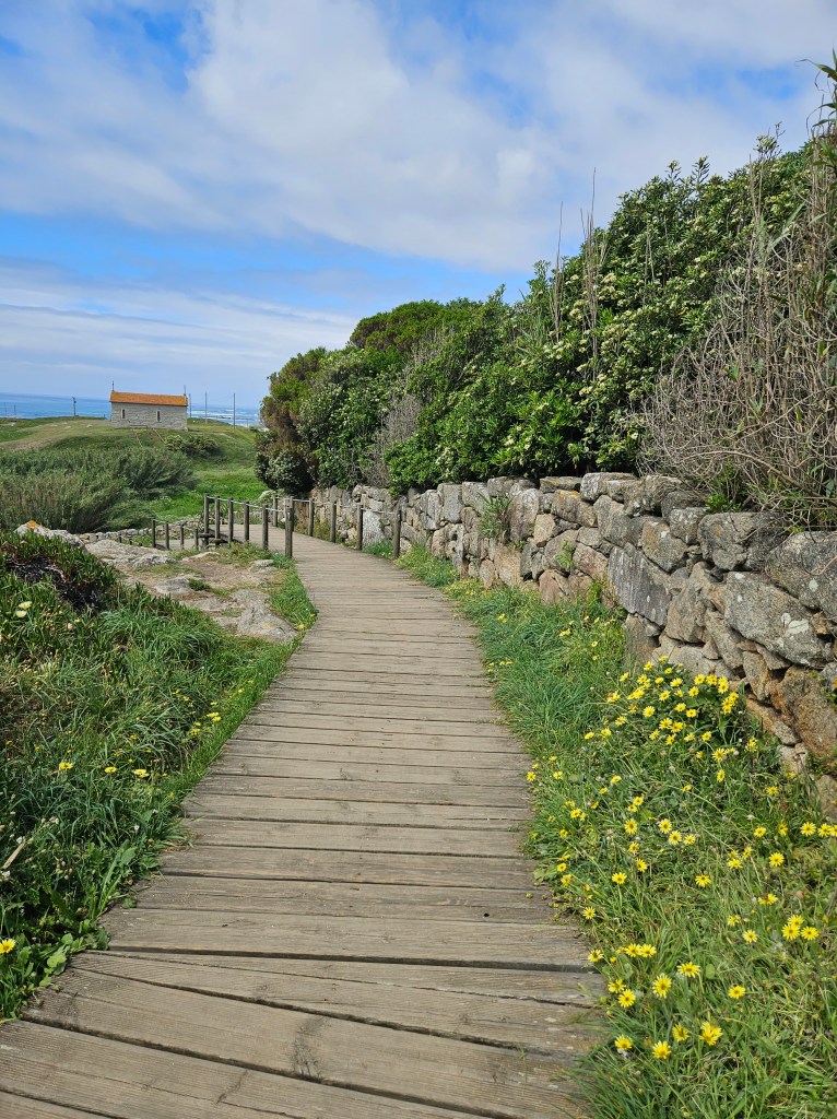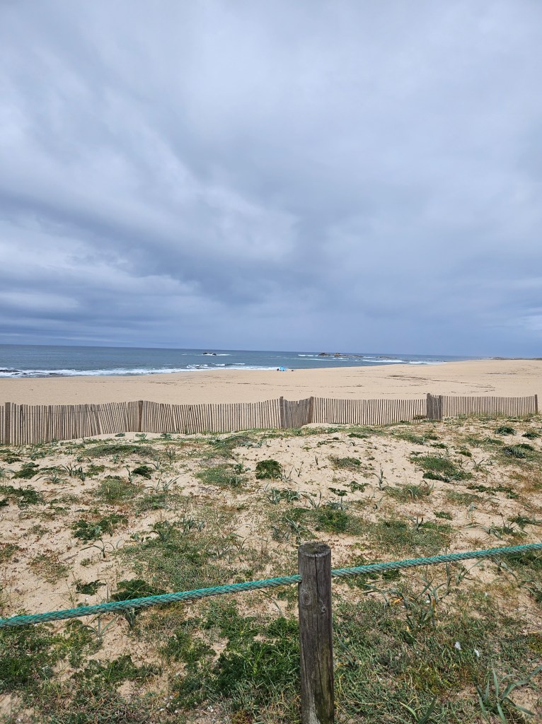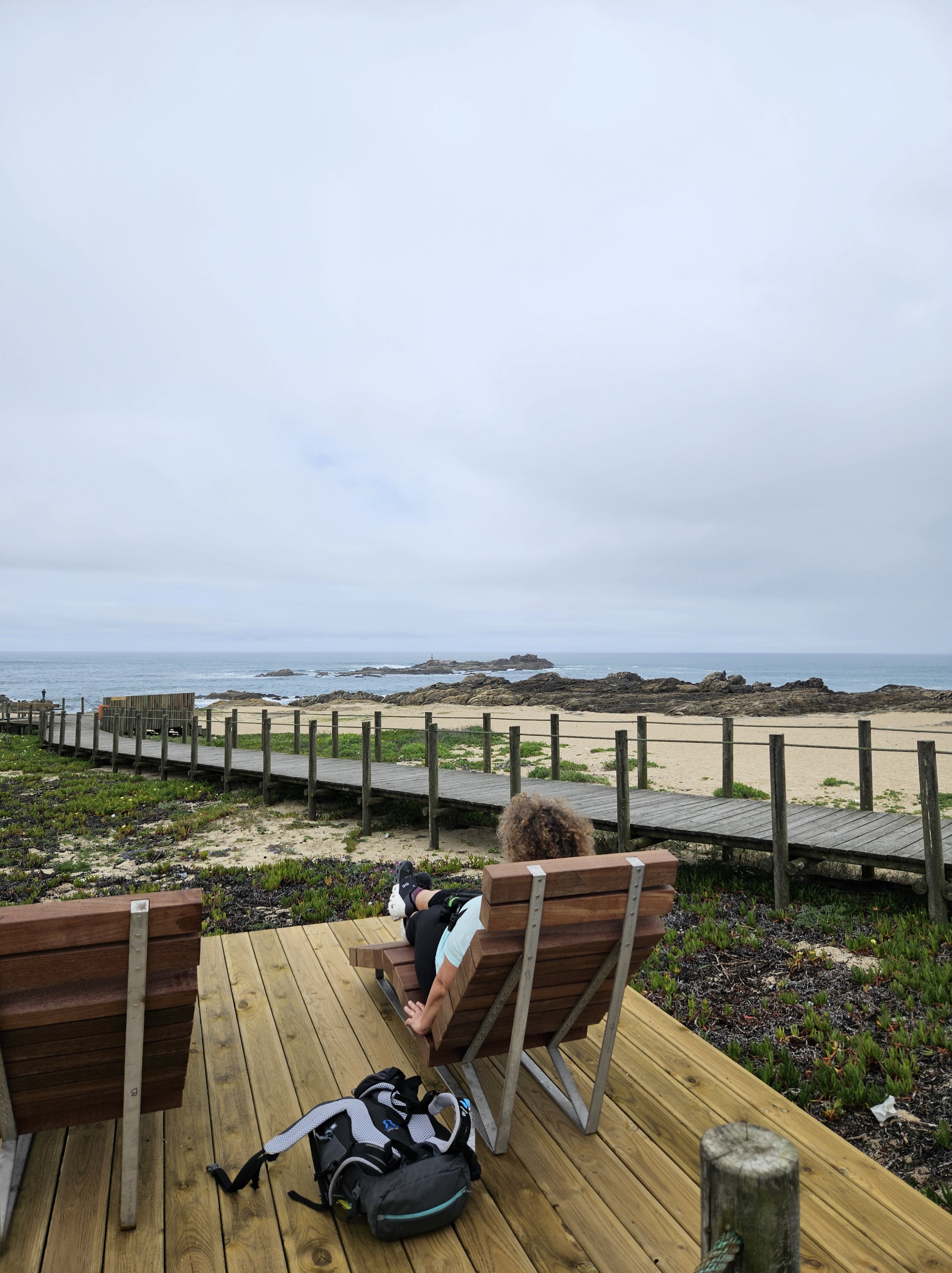The next morning I spoke to the server in the top floor bar/café, who had walked to Santiago in seven days … he said he would love to do it again, but over two weeks next time. Finding our way into Matosinhos town centre was easy enough, and we saw lots of pilgrims starting from the metro station. Pretty soon we were by the sea again, walking along a wide paved public promenade filled with joggers, dog walkers, childminding grandparents and pilgrims, or on wooden boardwalks.