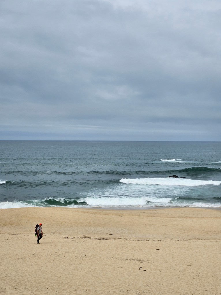 The coastline isn’t all sandy beaches though, as we walked it turned rocky and wild, then mellowed back to beach again. We stopped for lunch at a beach bar/restaurant – they were dotted at perfect intervals and most of them even had good changing facilities for swimmers and surfers.