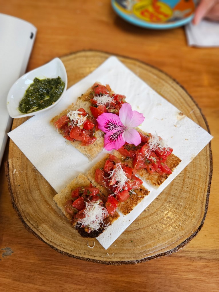 After a refreshing shower we went out to find a place to eat, but all the menus outside the waterfront restaurants looked the same … until someone walked past with these little bruschetta. Sold! We had a lovely meal and a lovely time at the Naval bar and restaurant – they even have rooms upstairs. I might stay there next time, if I walk the Coastal again.