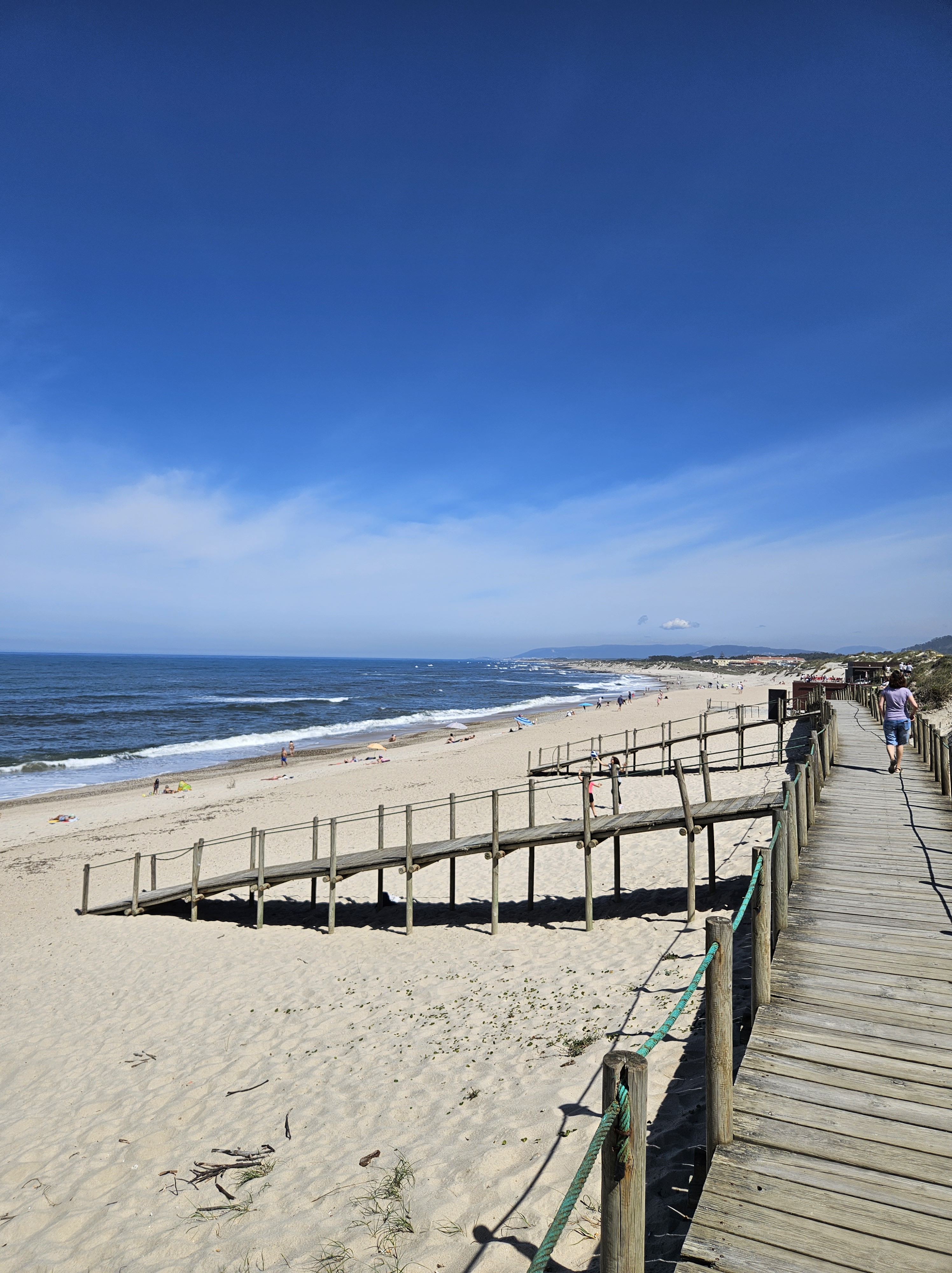 On the other side we picked up the red path our hostess told us to follow. At this point it was easy enough, just keep the sea close and to your left and you can’t go wrong. We enjoyed a long stop in Esposende with a decent brunch – it was already getting very hot, and other pilgrims came in and poured into the chairs in the shade. We had to use the app to find the right path, as there was a cluster of them.